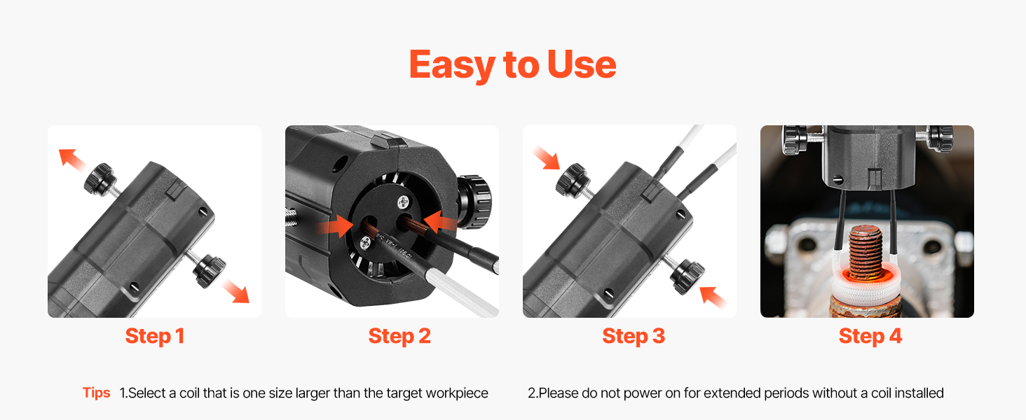 Jednoducho uvoľnite dve bočné matice na hornej strane, aby ste mohli ľahko vymeniť cievky. Indukčný ohrievač skrutiek sa bezpečne uzamkne a nie je ľahké ho uvoľniť.