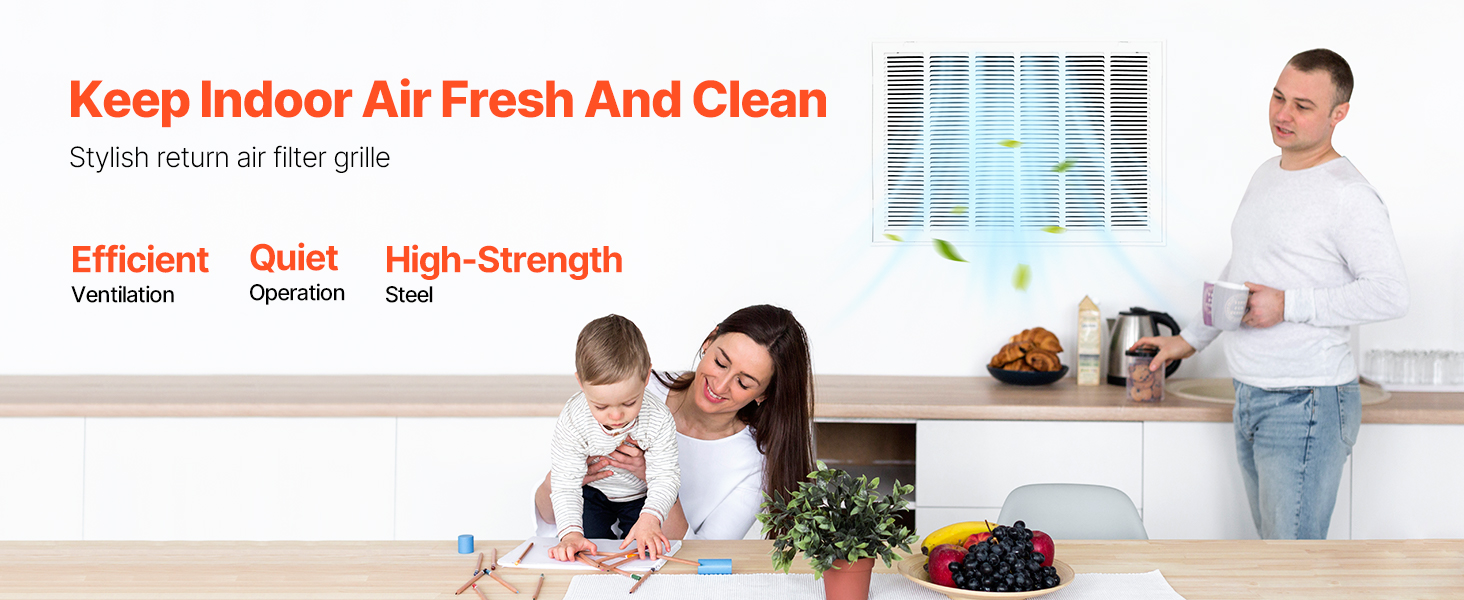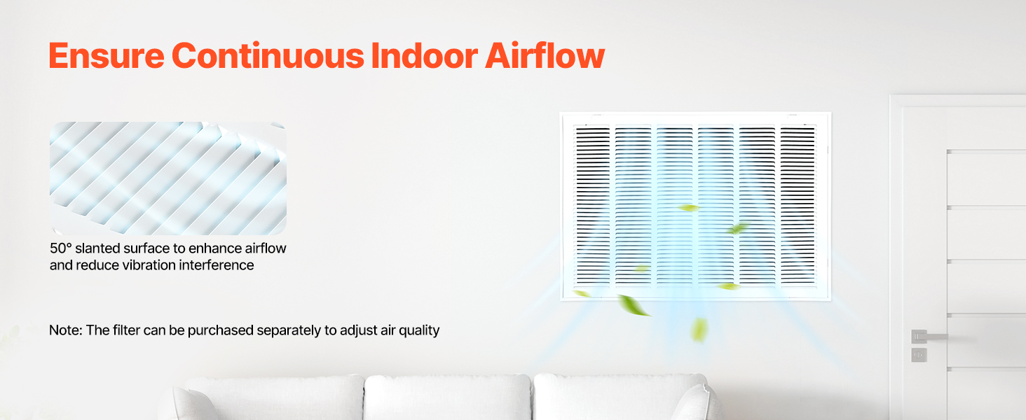 Šikmá mriežka maximalizuje prietok vzduchu pre efektívnu výmenu vzduchu medzi vnútornými a vonkajšími priestormi a zároveň podporuje inštaláciu filtra na zlepšenie kvality vzduchu.