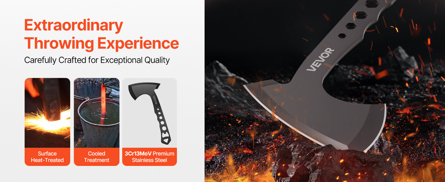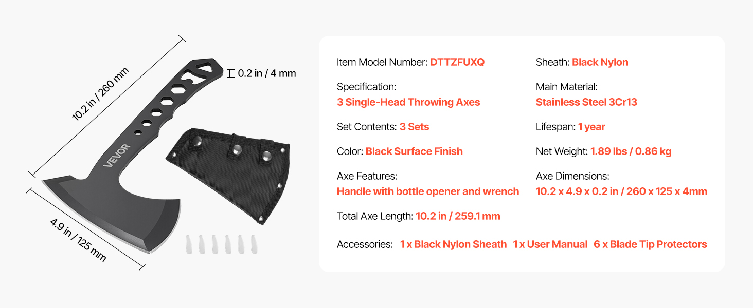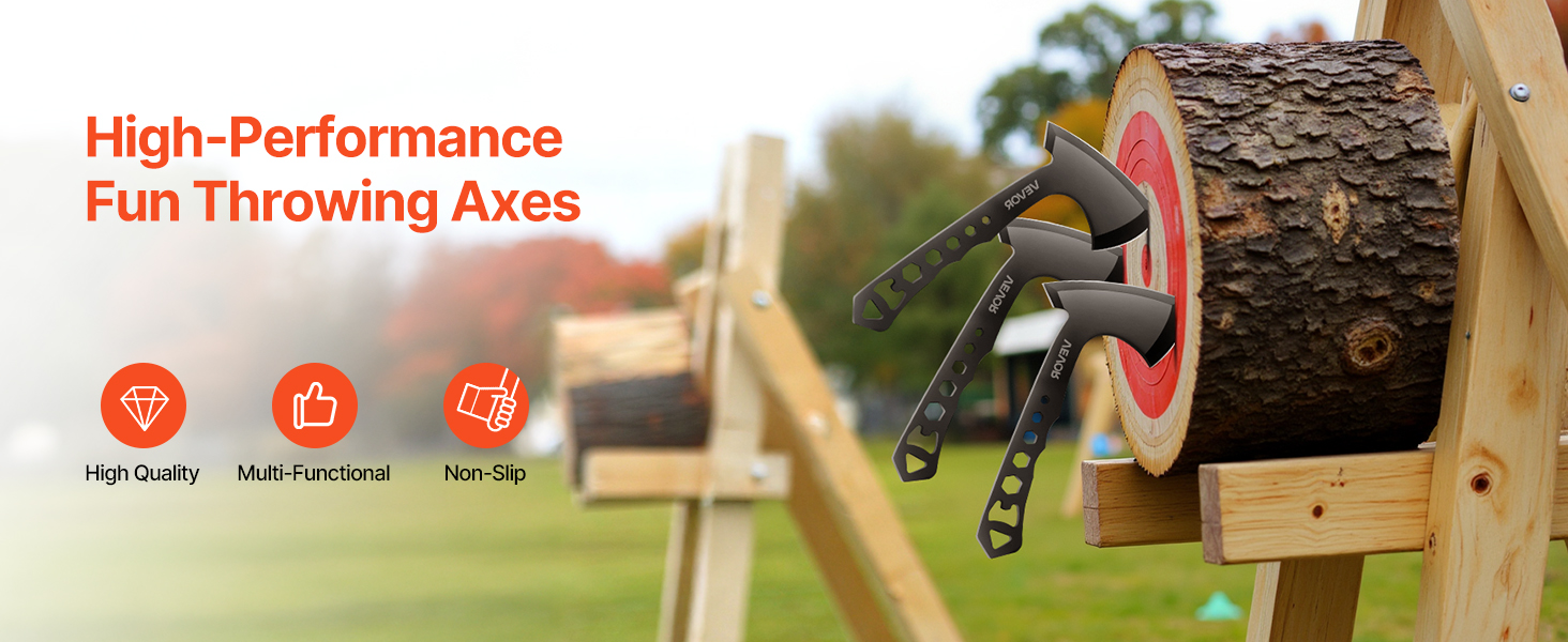 Táto multifunkčná súprava vrhacích sekier je určená pre domácu zábavu a outdoorových nadšencov, vyznačuje sa vyváženým rozložením hmotnosti, odolnými materiálmi a prenosnosťou - ideálna na presné hody a zábavné interakcie na večierkoch, súťažiach a podujatiach v prírode.