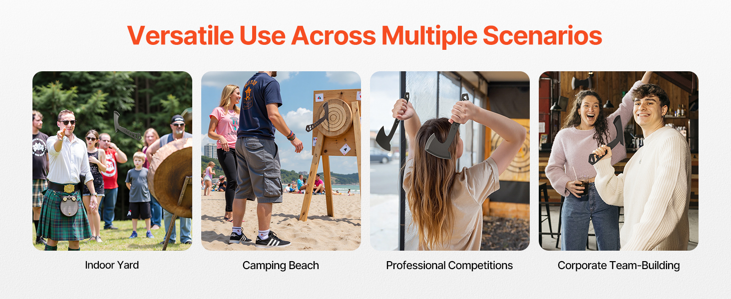 Od terás po kempy, od pláží po herné polia - táto vrhacia sekera s puzdrom si poradí s trávou, pieskom a ďalšími. Je to výbava na rodinnú zábavu, fitnes a priateľské zápasy.