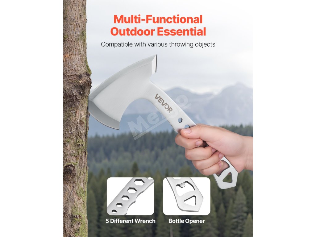 Každá rukoväť súpravy vrhacích sekier má zabudovaný otvárač na fľaše a otvor na kľúč, vďaka čomu je viacúčelovým outdoorovým nástrojom a univerzálnou súčasťou vašej kempingovej alebo párty súpravy.