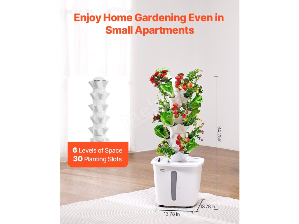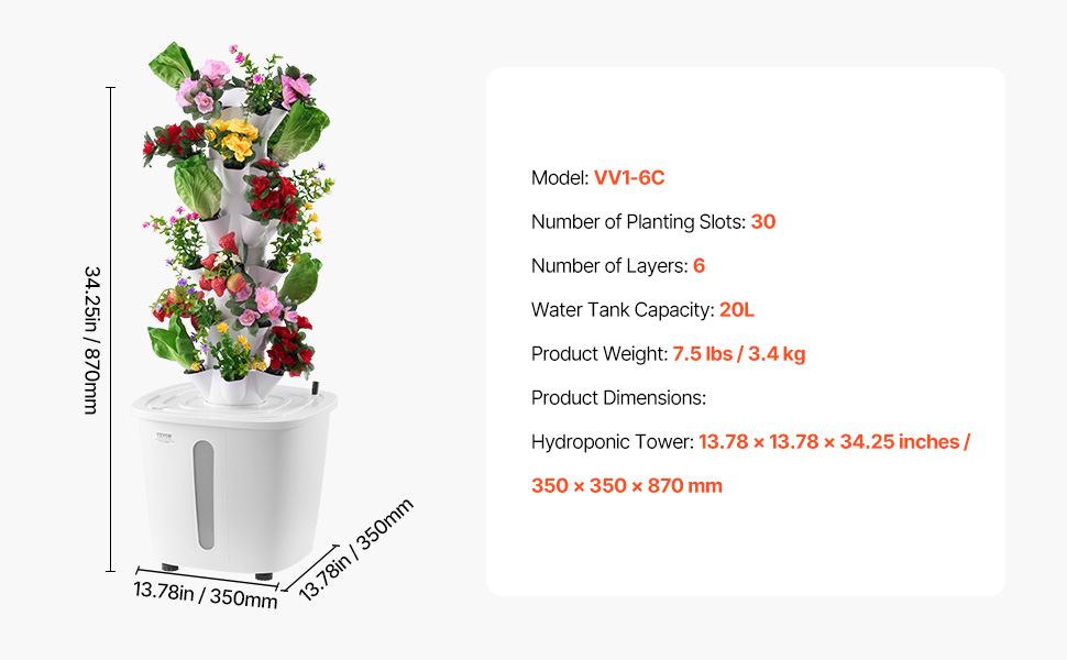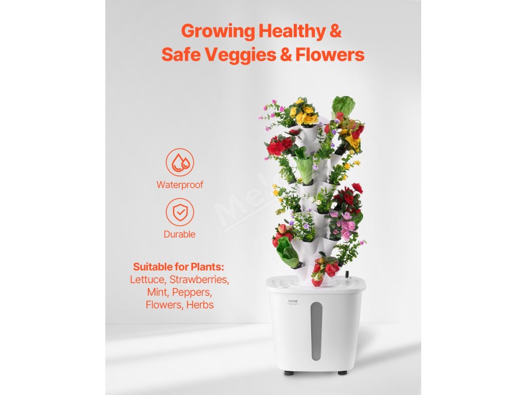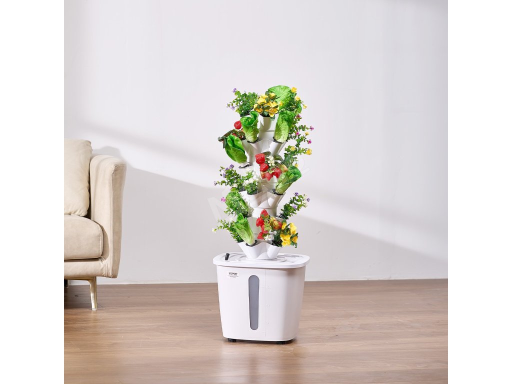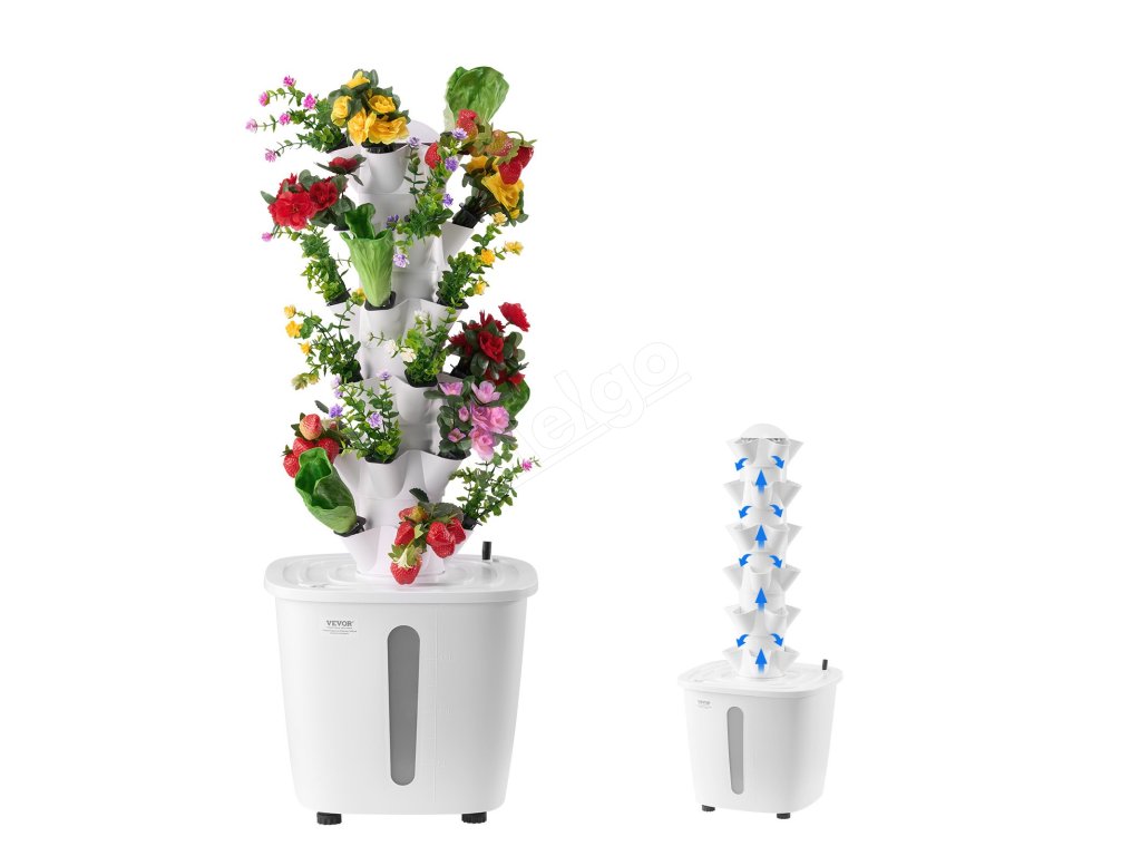 Táto 6-poschodová hydroponická veža je vyrobená z materiálu PP, ideálna na pestovanie zeleniny a kvetov. Nádrž na vodu s objemom 20 l a cirkulácia vody zabezpečujú zdravý rast rastlín. Vďaka inteligentnej zásuvke na presné ovládanie svetla a časovania vodného čerpadla je nastavenie jednoduché a bez pôdy na vytvorenie vašej záhrady snov.