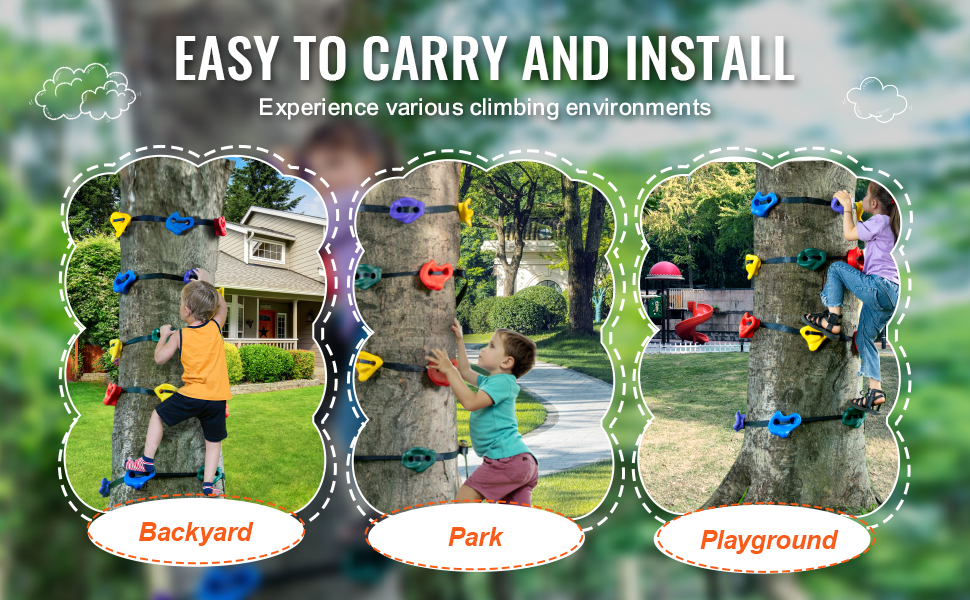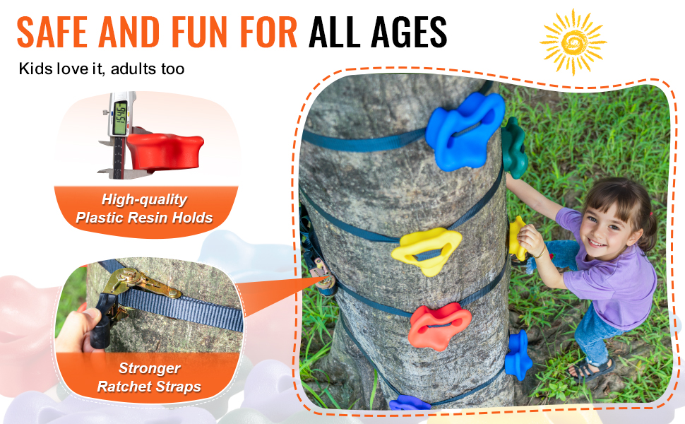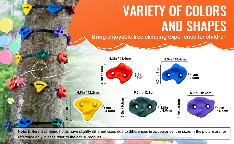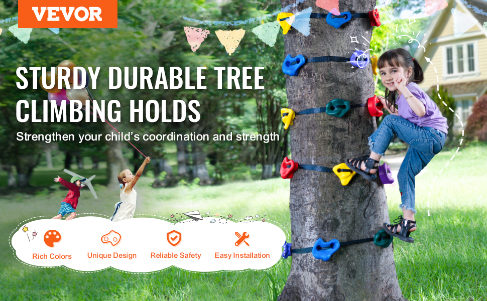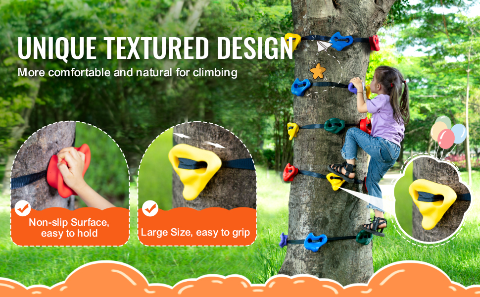 Chyty na lezenie na stromy poskytujú vašim malým dobrodruhom bezpečný a vzrušujúci zážitok z lezenia. Sú dostatočne robustné, aby uniesli až 230 kg, čím zabezpečia bezpečnosť vášho dieťaťa počas hry.