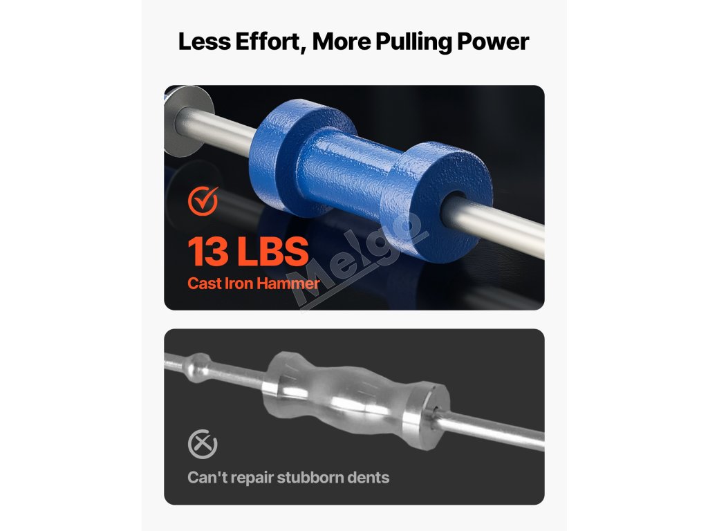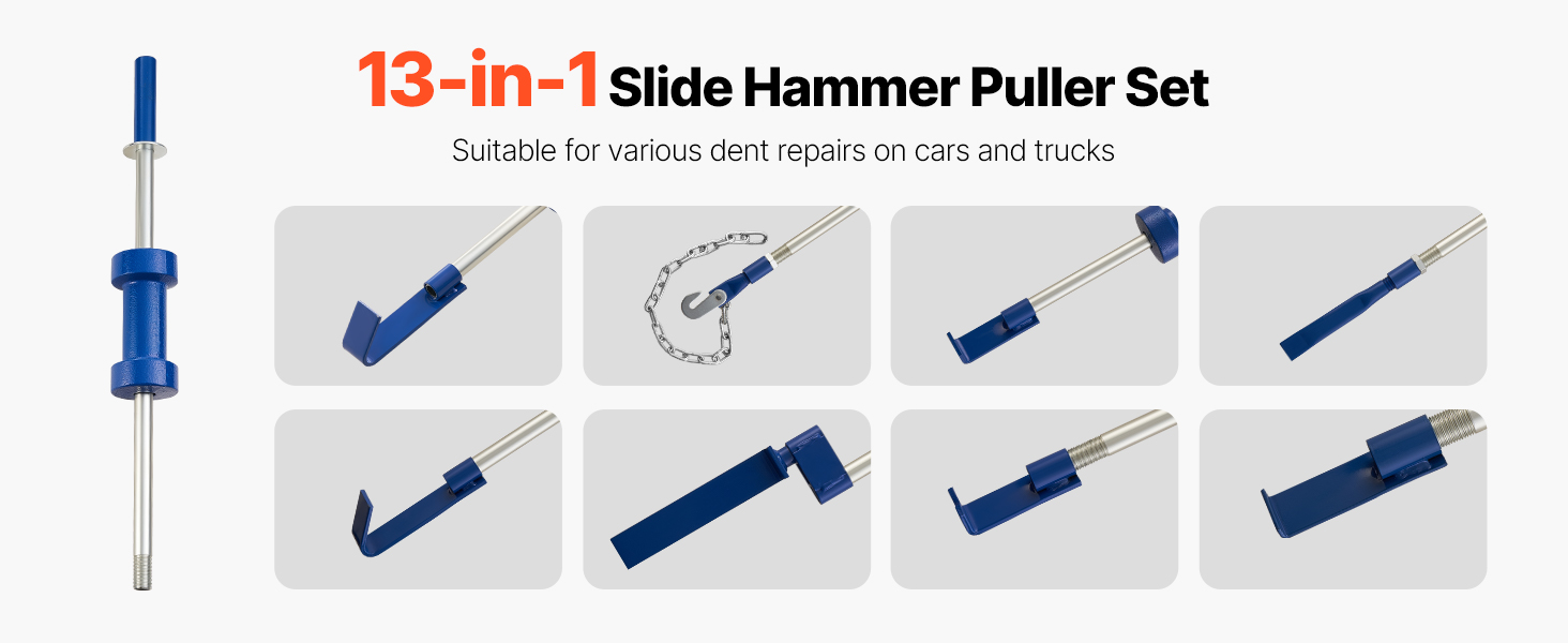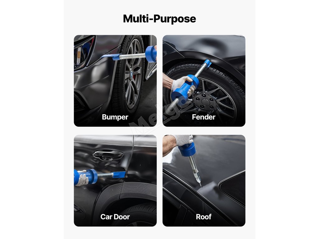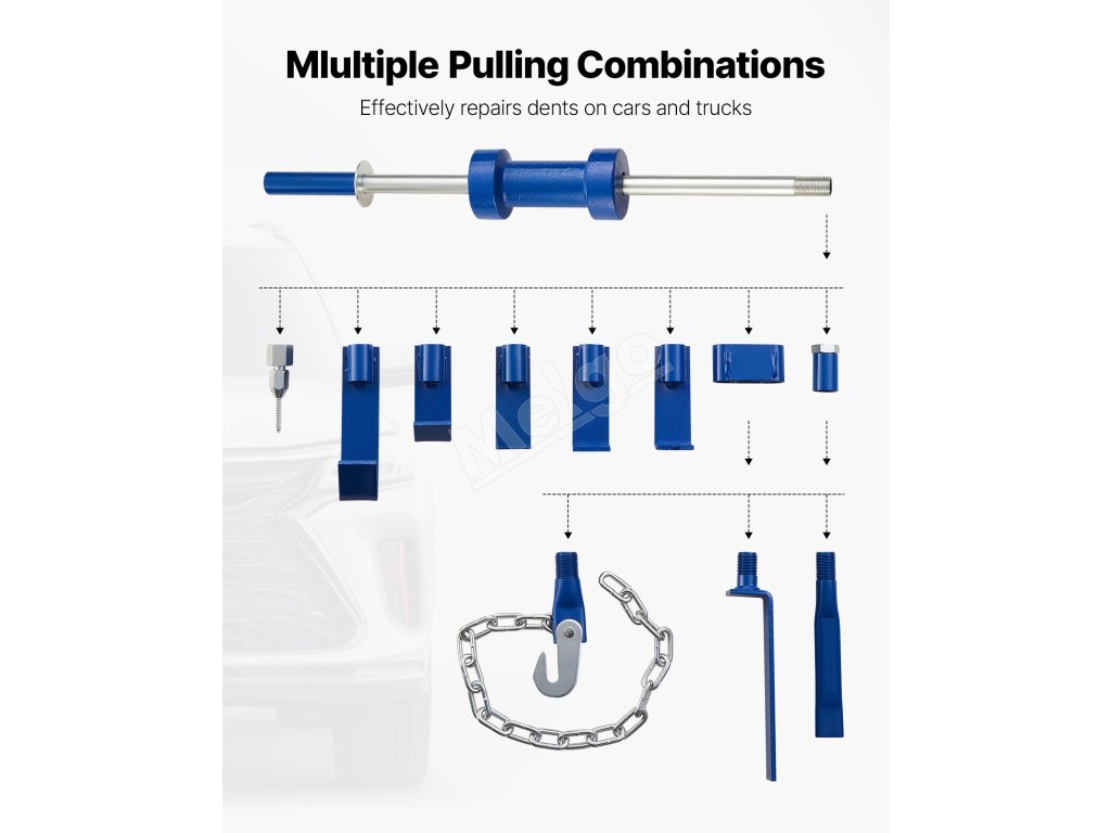 Zvládnite všetky druhy opráv - predné nárazníky, dvere, rámy, bočné panely, blatníky na osobných aj nákladných vozidlách. Táto súprava na vyťahovanie preliačin vám poskytuje flexibilitu, vďaka ktorej môžete ľahko vymieňať nástroje na rôzne typy poškodení.