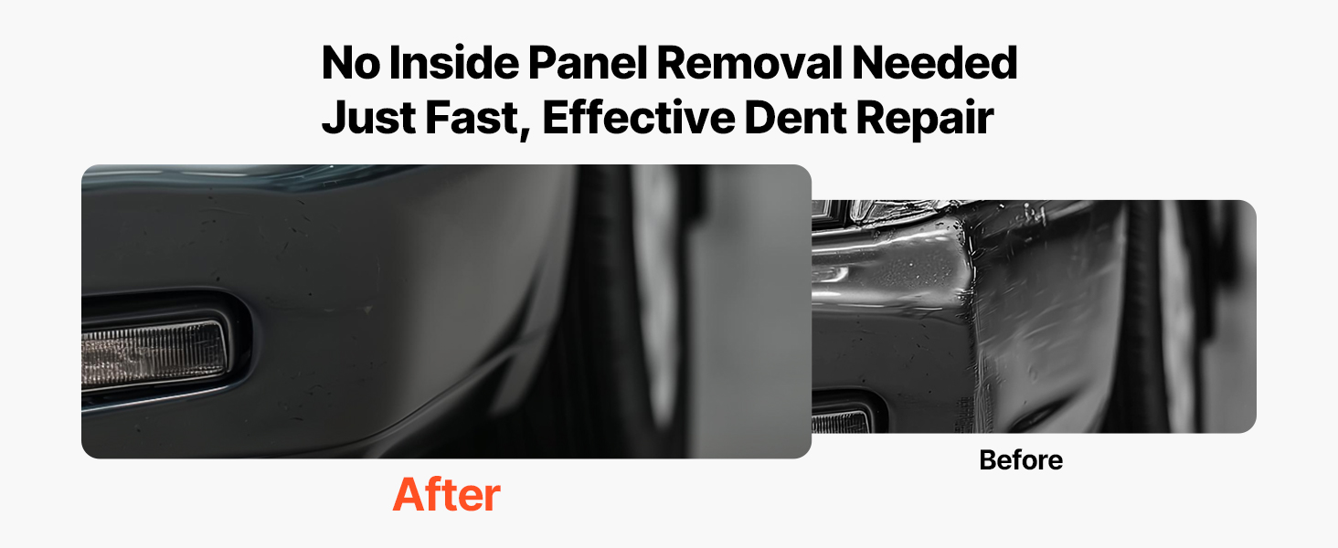 Nie je potrebné oddeľovať panely interiéru ani obloženie vozidla. Súprava na vyťahovanie preliačin vám pomôže rýchlo obnoviť tvar vozidla bez poškodenia pôvodného laku, čo je skvelé na rýchle opravy bez stresu.