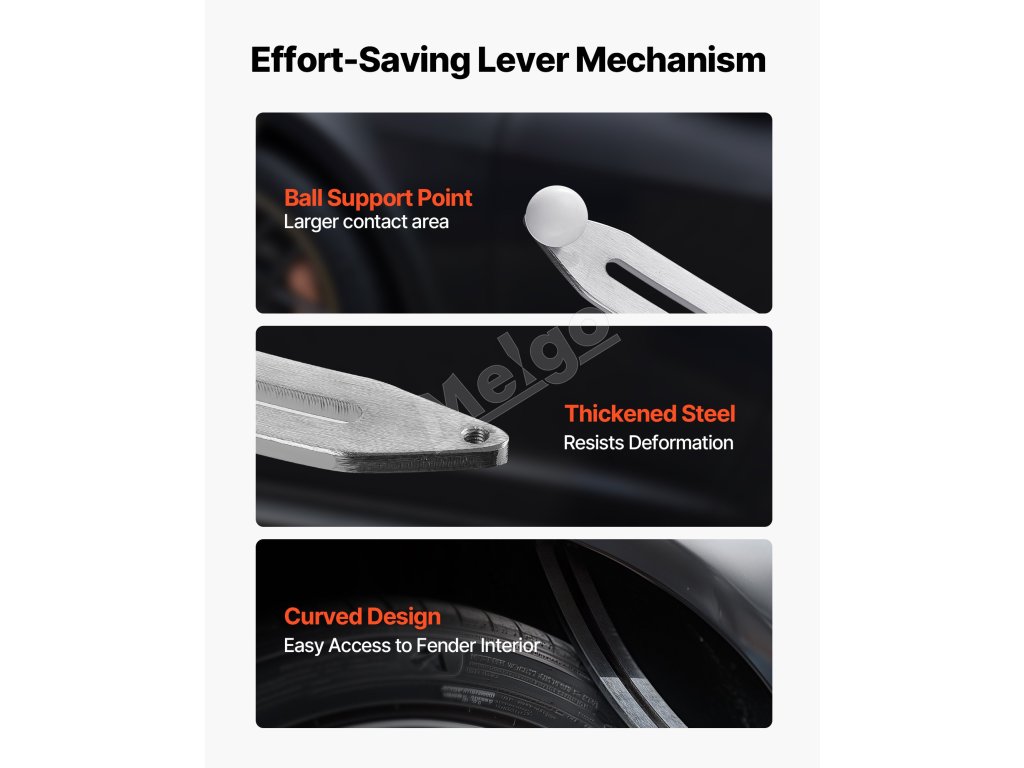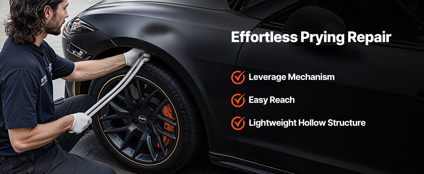 Tyč v tejto súprave na vyťahovanie preliačin je navrhnutá so zahnutým úzkym hrotom, vďaka čomu ľahko vkĺzne do úzkych priestorov, napríklad do blatníkov. Riadi sa princípom pákového efektu, vďaka čomu je oprava preliačiny jednoduchšia s použitím menšej sily - aj keď nie ste profesionál.