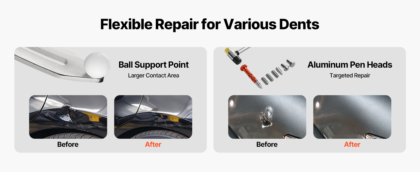 Naša súprava na odstraňovanie preliačin opraví preliačiny bez poškodenia pôvodného laku vášho vozidla. Žiadne prelakovanie, žiadny farebný nesúlad - len hladké výsledky. Je ideálna na preliačiny blatníkov a malé nerovnosti karosérie, pokiaľ povrch laku nie je popraskaný alebo odlomený.