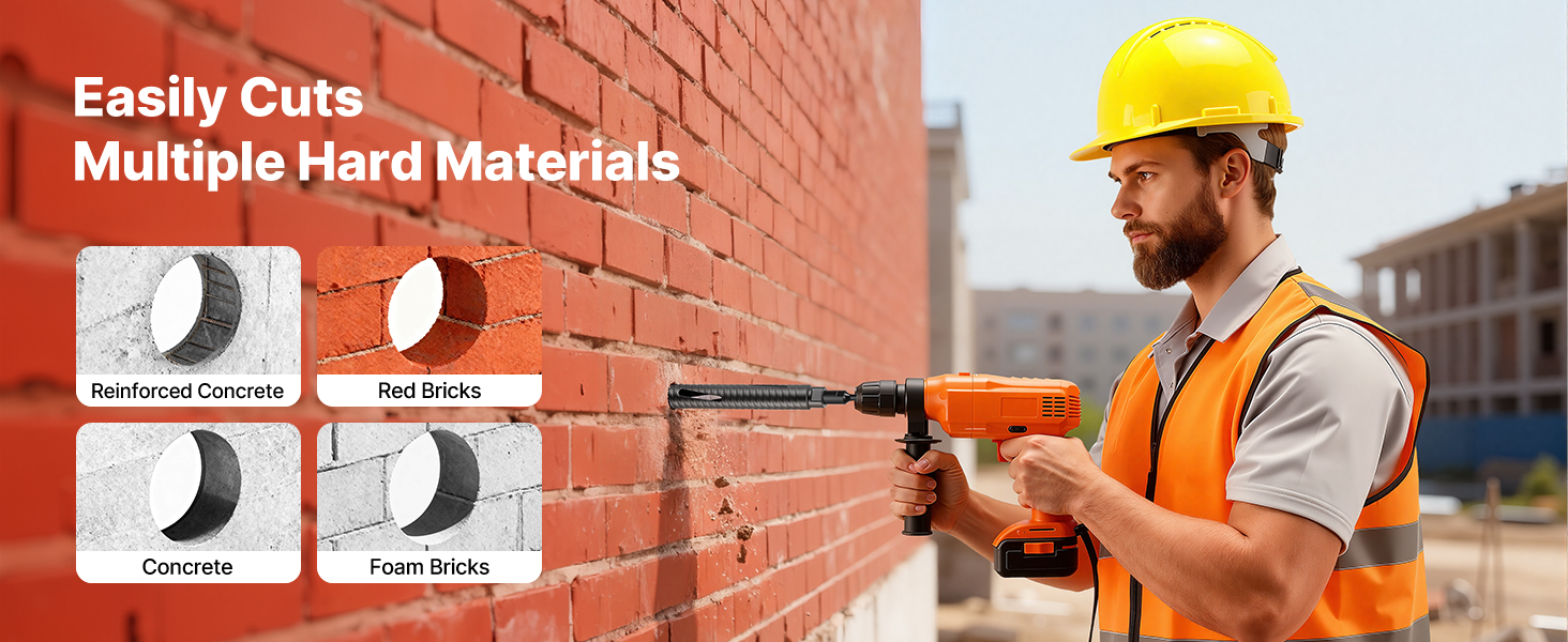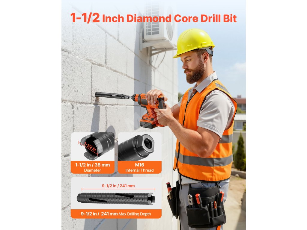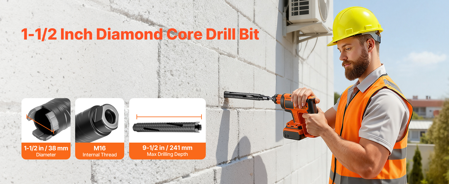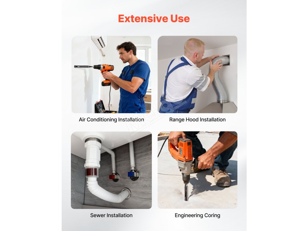 Jadrový vrták zabezpečuje čisté a presné otvory v tvrdých materiáloch, ako sú červené tehly, betón a penové bloky. Vhodný na všetky vaše potreby vŕtania v rámci stavebných a renovačných projektov.