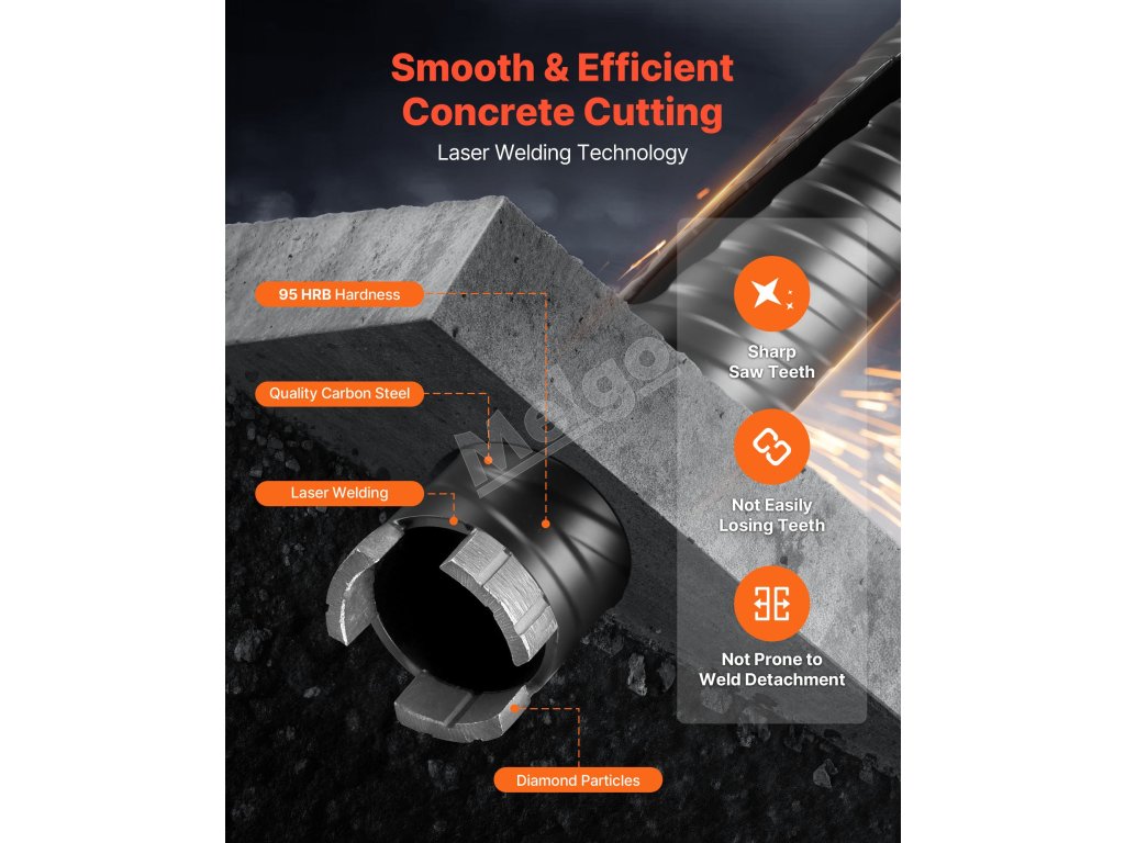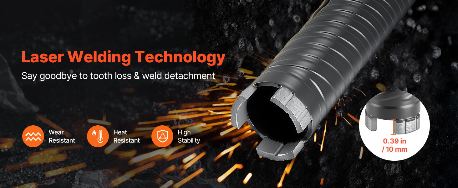 Tento vrták do betónu, vyrobený s vysoko presným zváraním pre vynikajúcu odolnosť proti opotrebovaniu a stabilitu pri vysokých teplotách, udržiava diamantové zuby pevné a bezpečné v náročných podmienkach vŕtania, čím minimalizuje stratu zubov alebo ich oddeľovanie pre dlhotrvajúcu životnosť.