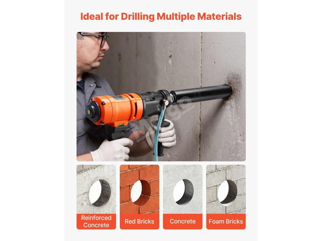 Jadrový vrták zabezpečuje čisté a presné otvory v tvrdých materiáloch, ako sú červené tehly, betón a penové bloky. Vhodný na všetky vaše potreby vŕtania v rámci stavebných a renovačných projektov.