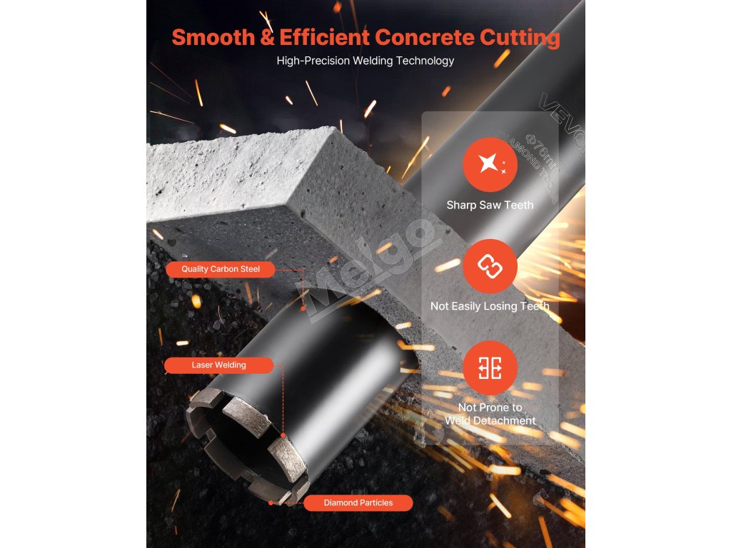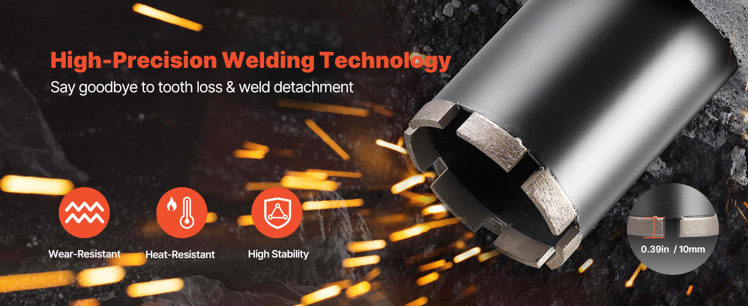 Tento vrták na jadrové vŕtanie do betónu, vyrobený s vysoko presným zváraním pre vynikajúcu odolnosť proti opotrebovaniu a stabilitu pri vysokých teplotách, udržiava diamantové zuby pevné a bezpečné v náročných podmienkach vŕtania, čím sa minimalizuje strata zubov alebo ich oddeľovanie pre dlhotrvajúcu životnosť.