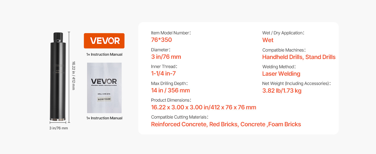 Tento jadrový vrták vyrobený z prvotriednej uhlíkovej ocele s diamantovými zubami si zachováva ostrosť pri rezaní a brúsení tvrdých materiálov a poskytuje vynikajúcu odolnosť proti opotrebovaniu a dlhotrvajúcu životnosť.