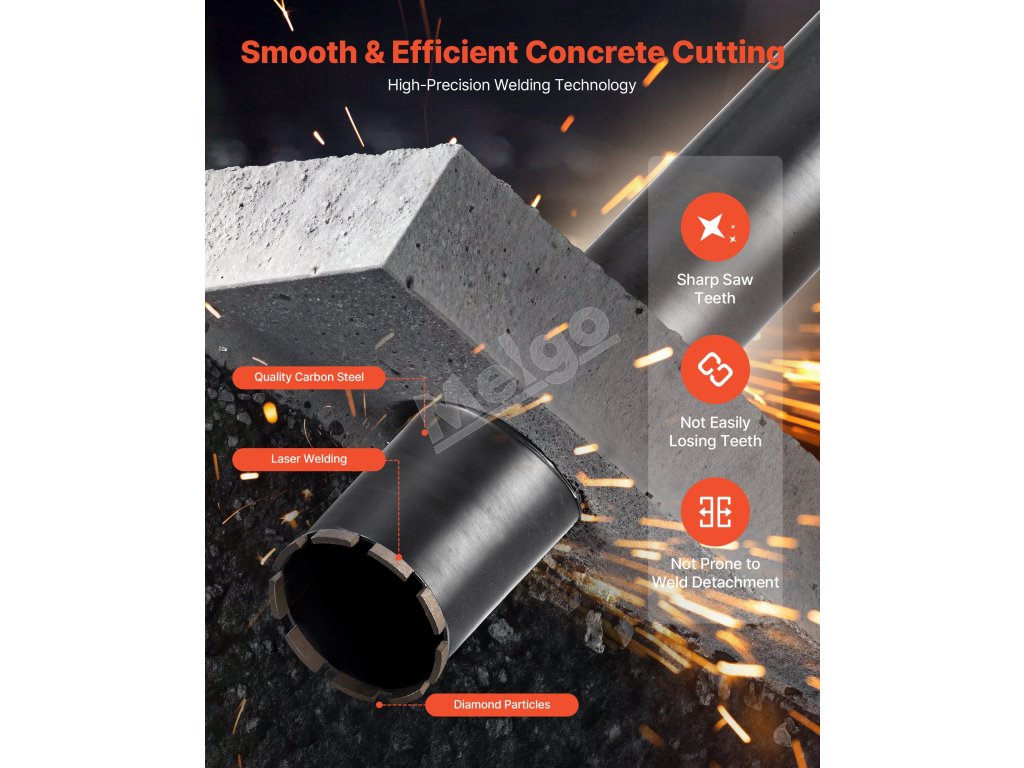 Tento vrták na jadrové vŕtanie do betónu, vyrobený s vysoko presným zváraním pre vynikajúcu odolnosť proti opotrebovaniu a stabilitu pri vysokých teplotách, udržiava diamantové zuby pevné a bezpečné v náročných podmienkach vŕtania, čím sa minimalizuje strata zubov alebo ich oddeľovanie pre dlhotrvajúcu životnosť.