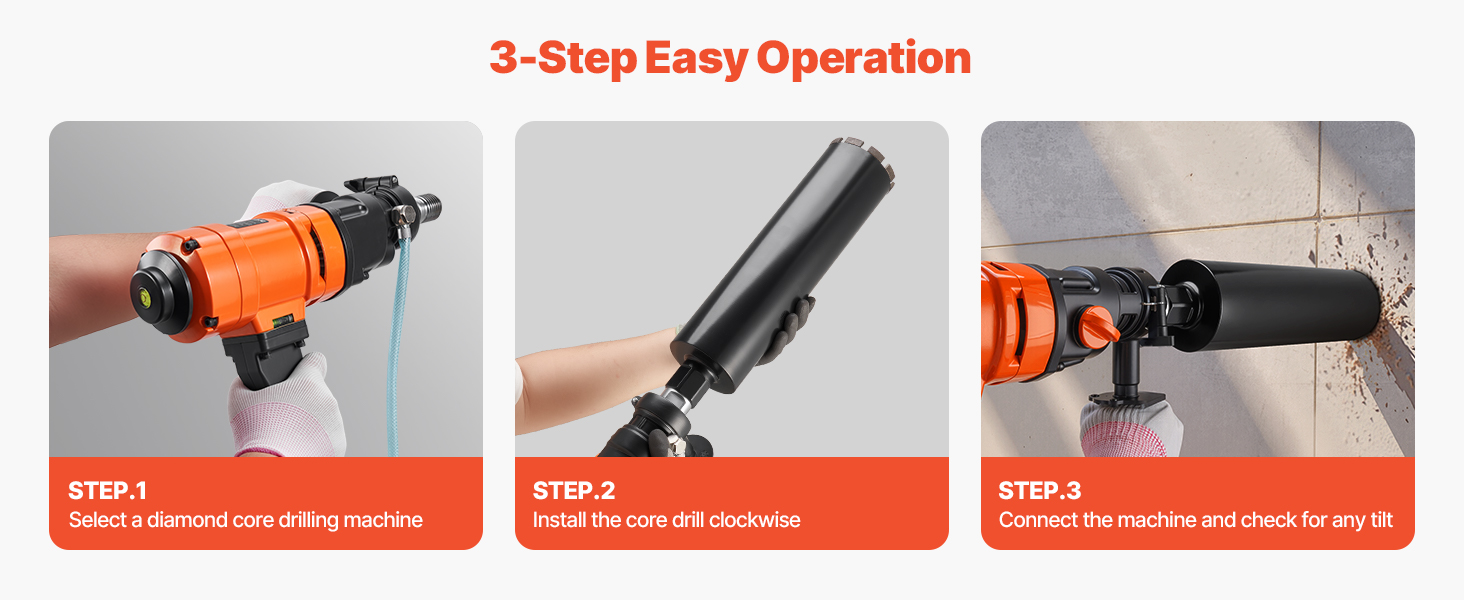 Tieto jadrové vrtáky do betónu sa jednoducho inštalujú a obsluhujú aj pre začiatočníkov. Pre optimálny výkon a výsledky dbajte na to, aby bol vrták počas používania rovný a zarovnaný so stenou otvoru.