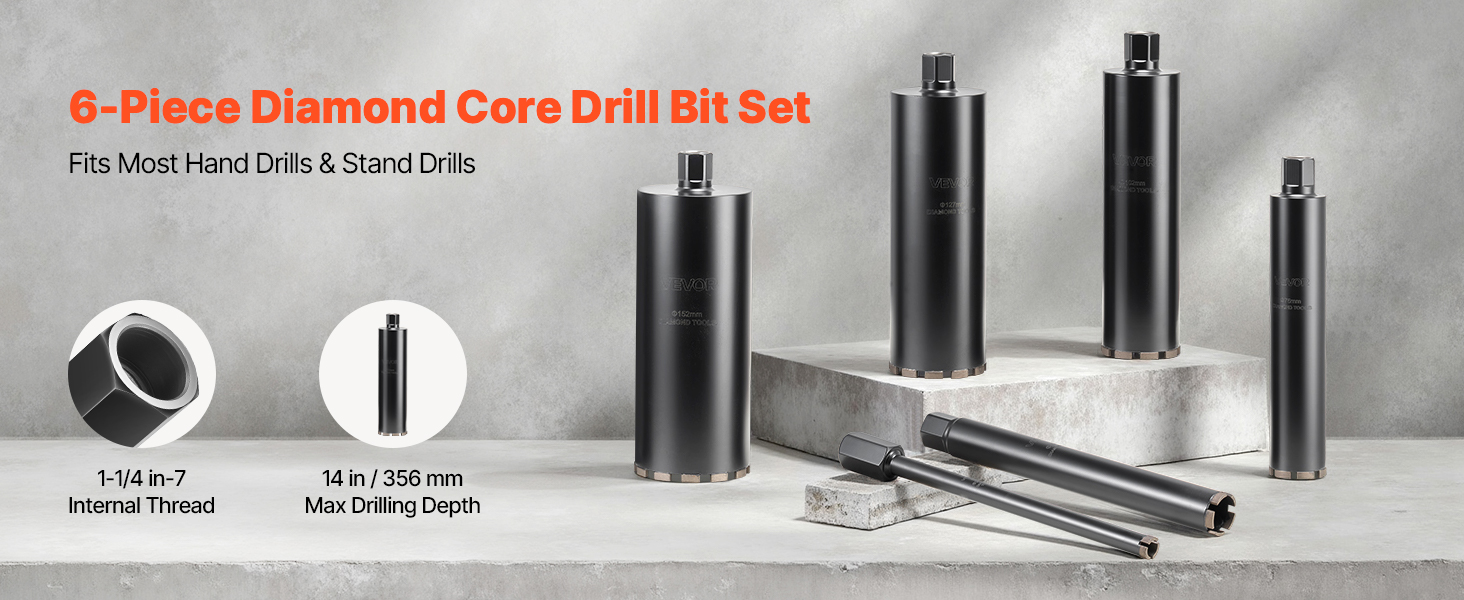 Sada diamantových jadrových vrtákov 6 ks Ø25.4–152.4 mm, hĺbka 356 mm