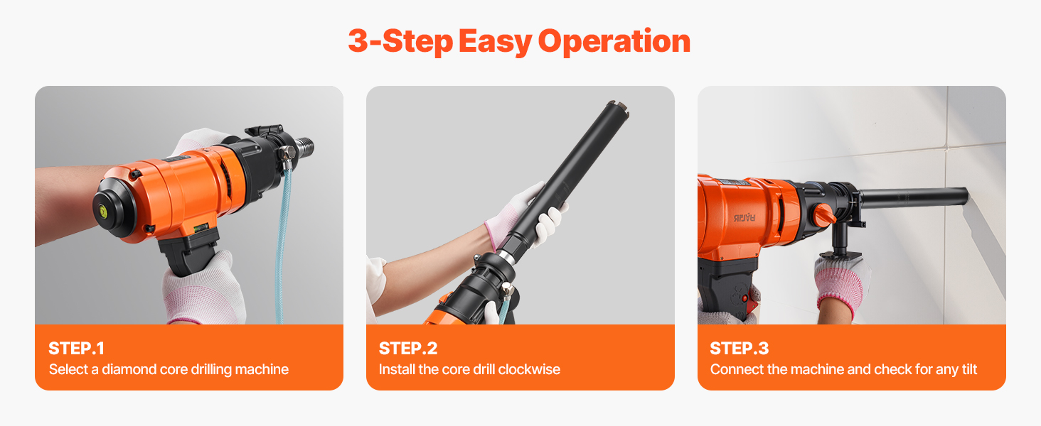 Tieto jadrové vrtáky do betónu sa jednoducho inštalujú a obsluhujú aj pre začiatočníkov. Pre optimálny výkon a výsledky dbajte na to, aby bol vrták počas používania rovný a zarovnaný so stenou otvoru.