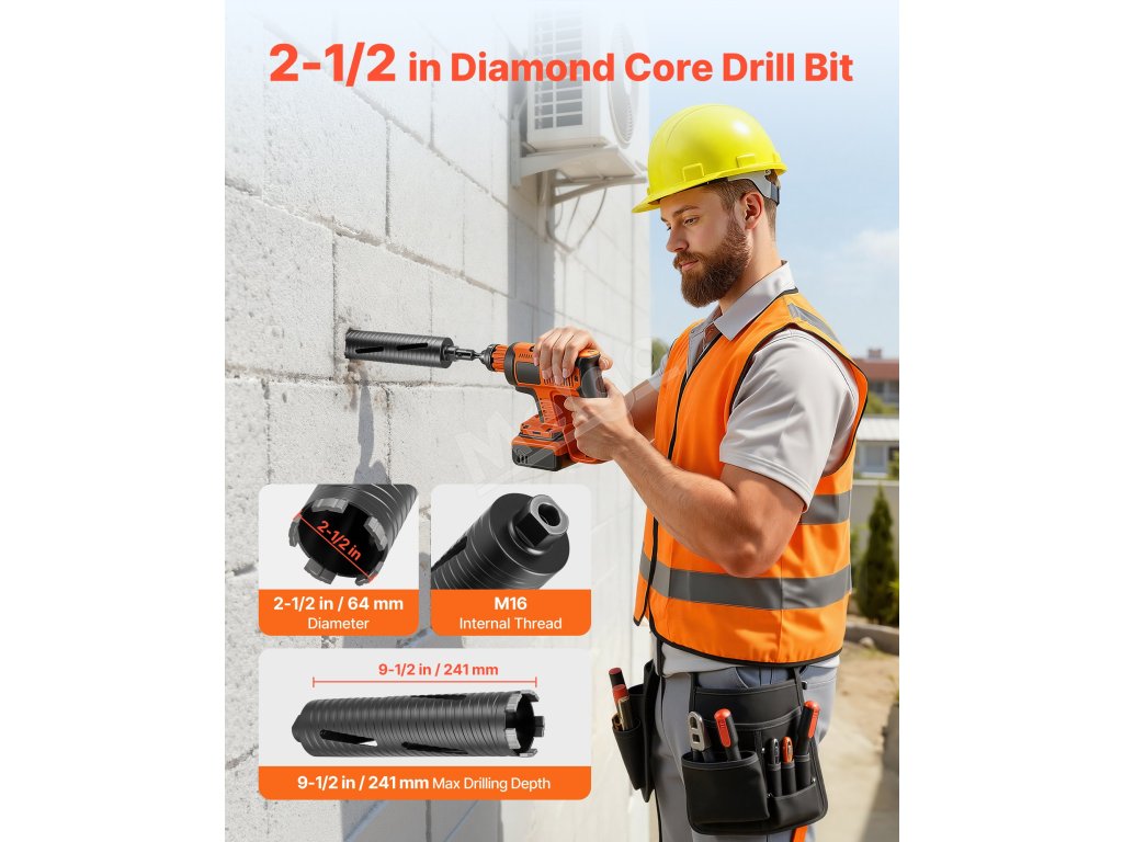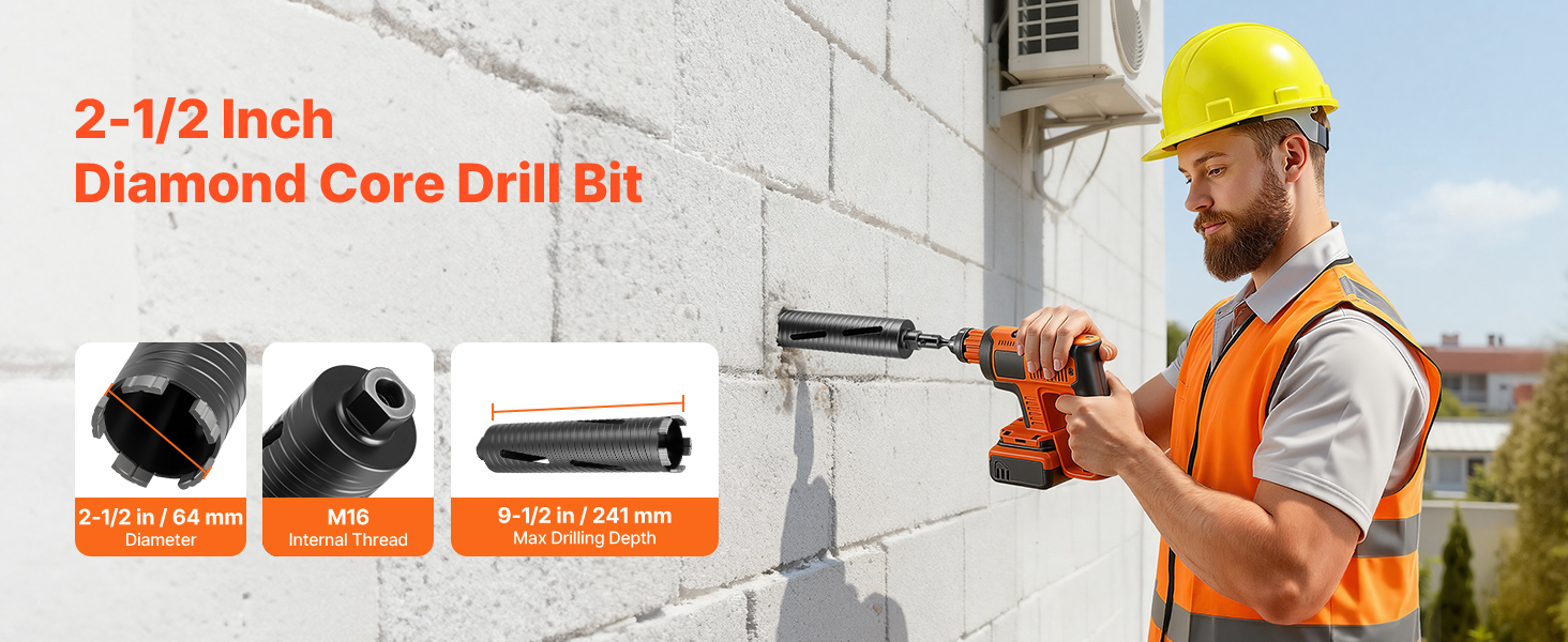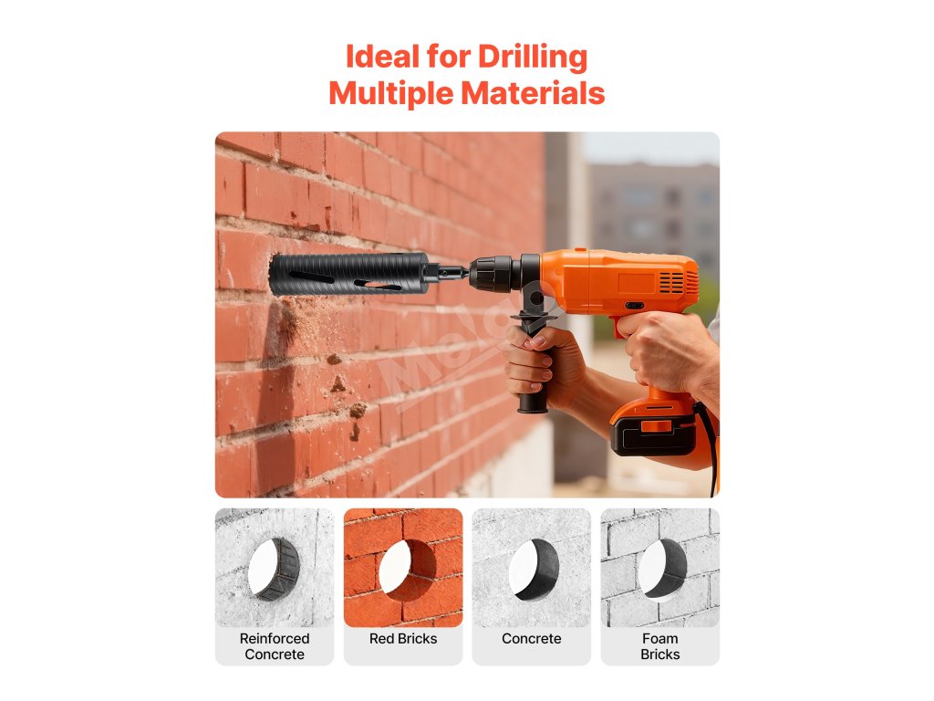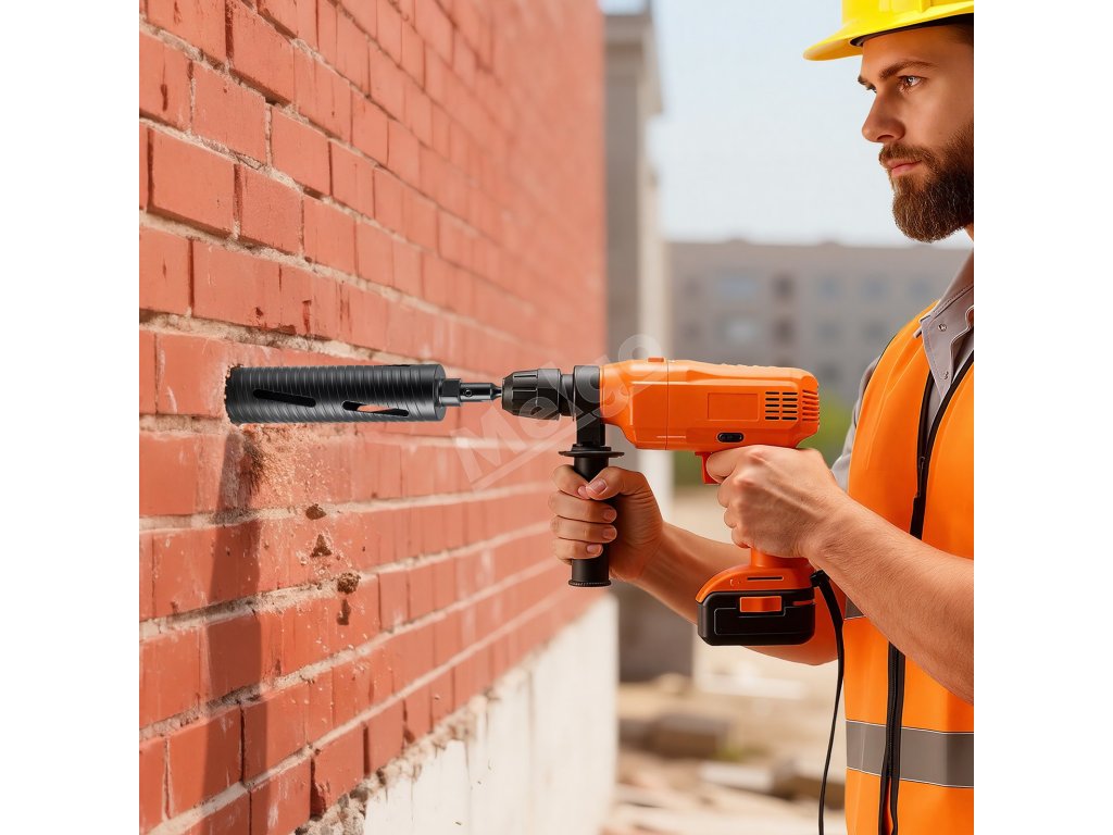 Jadrový vrták zabezpečuje čisté a presné otvory v tvrdých materiáloch, ako sú červené tehly, betón a penové bloky. Vhodný na všetky vaše potreby vŕtania v rámci stavebných a renovačných projektov.