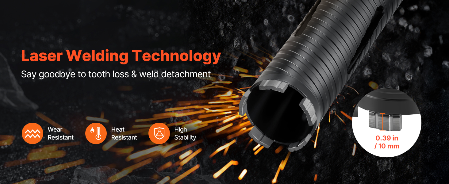 Tento vrták do betónu, vyrobený s vysoko presným zváraním pre vynikajúcu odolnosť proti opotrebovaniu a stabilitu pri vysokých teplotách, udržiava diamantové zuby pevné a bezpečné v náročných podmienkach vŕtania, čím minimalizuje stratu zubov alebo ich oddeľovanie pre dlhotrvajúcu životnosť.