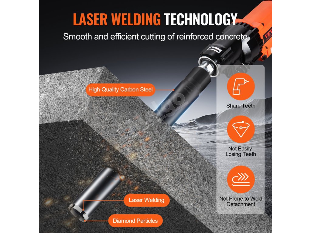 Technológia laserového zvárania zaisťuje výnimočnú odolnosť proti opotrebovaniu a vysokoteplotnú stabilitu diamantového jadrového vrtáka, vďaka čomu je ideálny na vŕtanie v rôznych podmienkach, dokonca aj v prostredí s vysokými teplotami. Je menej náchylný na vypadávanie zubov a oddeľovanie zvarov, čo vedie k zvýšenej životnosti.