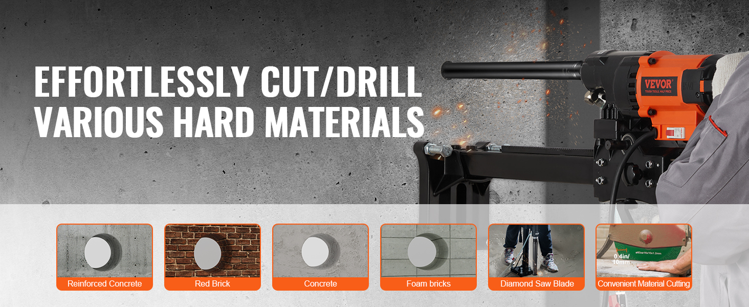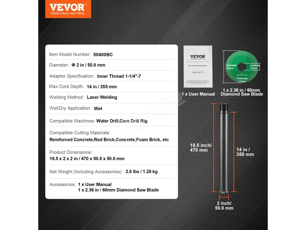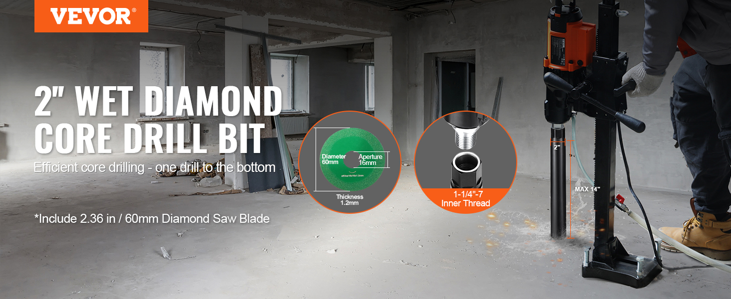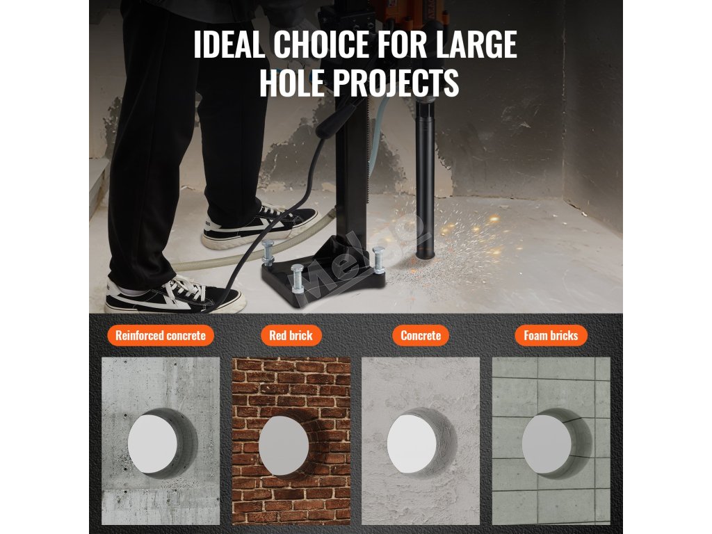 Vrták na mokré vŕtanie zabezpečuje čisté a presné otvory v náročných materiáloch, ako sú železobetón, červené tehly, betón, penové tehly a ďalšie. Dodáva sa s diamantovým pílovým kotúčom, ktorý umožňuje presné, hladké a efektívne rezanie rôznych materiálov.