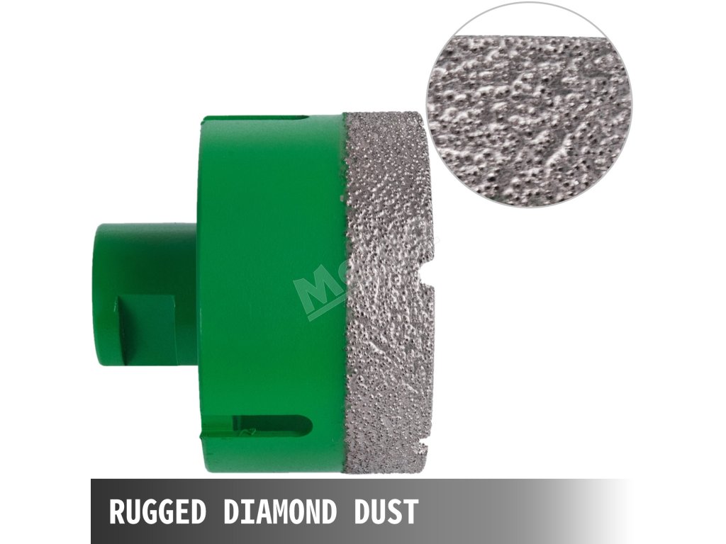 Diamantové vrtáky na sklo majú aj otvory na telese, takže piliny sa dajú účinne odstraňovať, kým sa čepele otáčajú vysokou rýchlosťou.