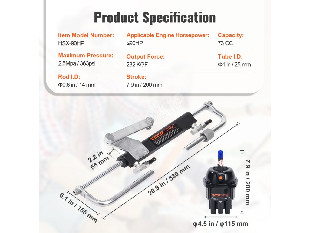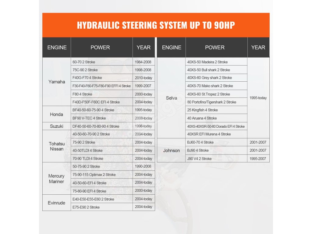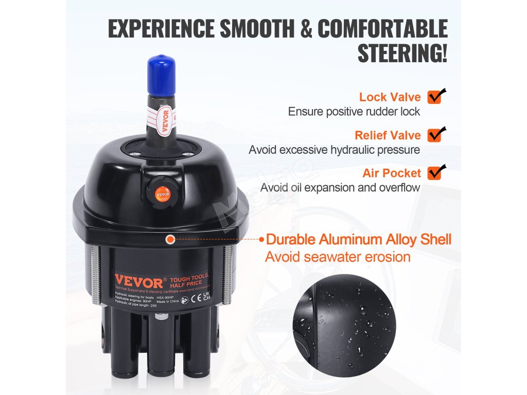 Naša súprava umožňuje inštaláciu hydraulického systému riadenia na motory do 90HP. Kormidlový hriadeľ má plášť z hliníkovej zliatiny, ktorý odoláva drsnému morskému prostrediu. Hydraulický valec riadenia obsahuje dvojcestný blokovací ventil, ktorý vám prináša špičkovú námornú kvalitu.