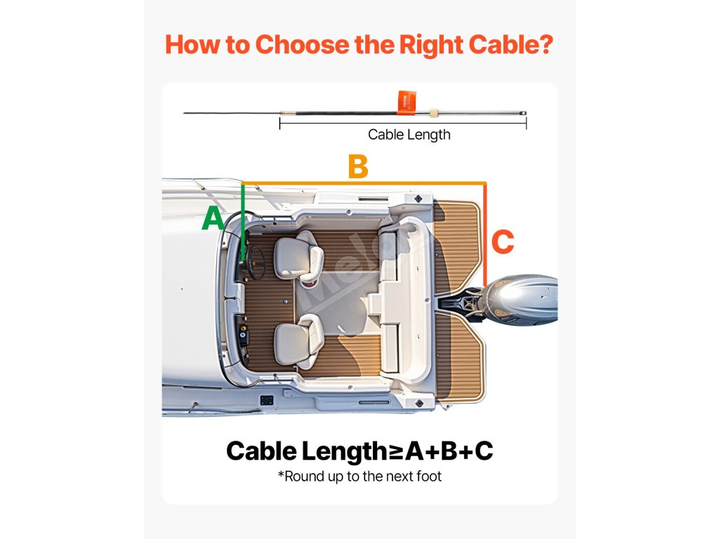 - Poznámka: Zmerajte dĺžku svojho člna A+B+C (od volantu po valec) podľa nášho obrázka a objednajte si veľkosť, ktorú potrebujete.