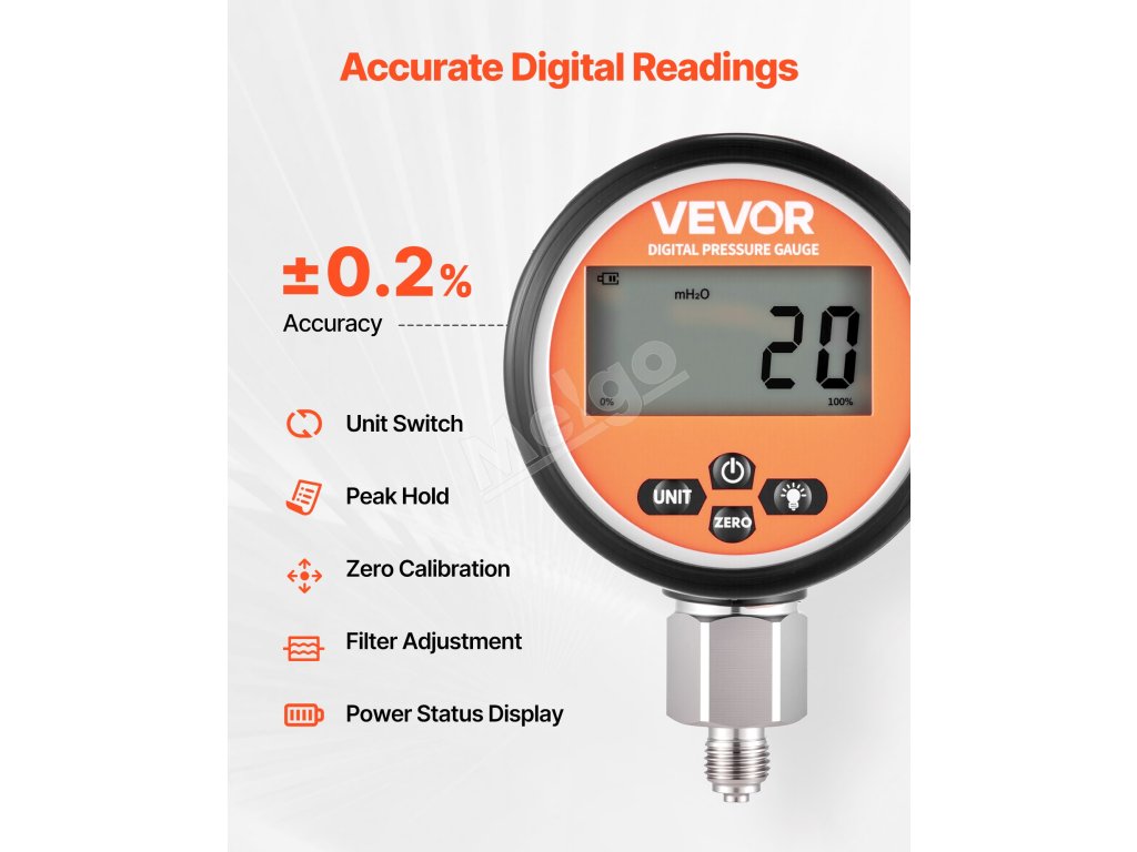 Na rozdiel od tradičných analógových číselníkov táto súprava hydraulických tlakomerov poskytuje ľahko čitateľné digitálne výsledky s vysokou presnosťou, čím znižuje chybovosť ľudského faktora. Je skonštruovaný s čipom Freescale a difúznym kremíkovým snímačom, čo zaručuje spoľahlivé a konzistentné údaje.