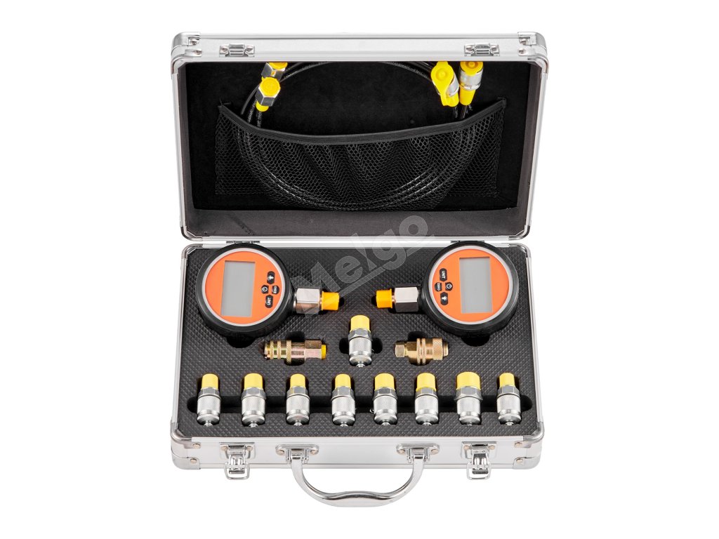 Digitálna hydraulická sada 700 bar, 2 manometre, 9 spojok, 2 hadice