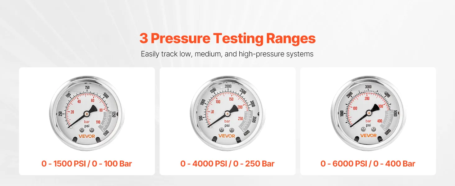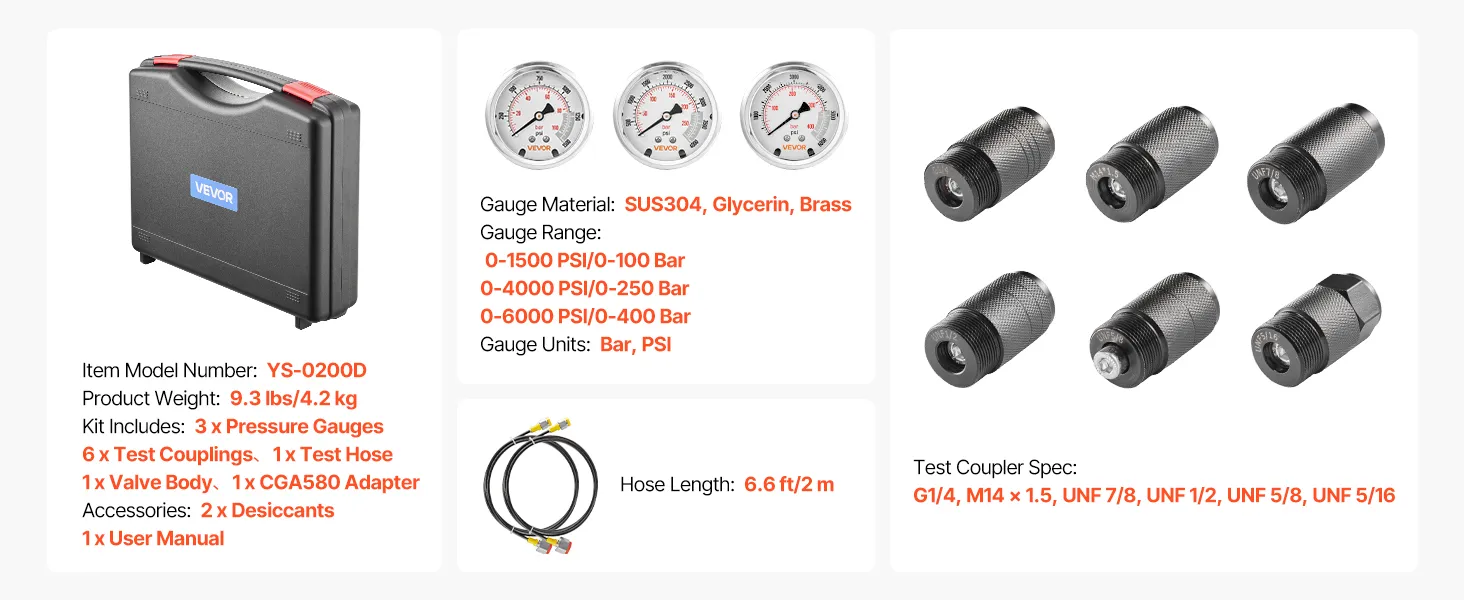 Súprava na testovanie hydraulického tlaku je vyrobená z robustnej kovovej konštrukcie, ktorá poskytuje výnimočnú pevnosť a odolnosť, takže je ideálna na časté používanie v náročných podmienkach.