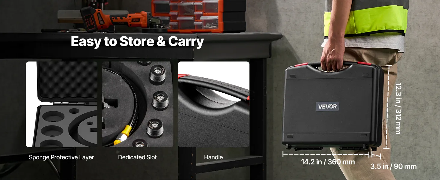Súprava hydraulického manometra obsahuje 2 vysúšadlá vo vnútri puzdra, ktoré zabraňujú hromadeniu vlhkosti a udržiavajú náradie bez korózie.