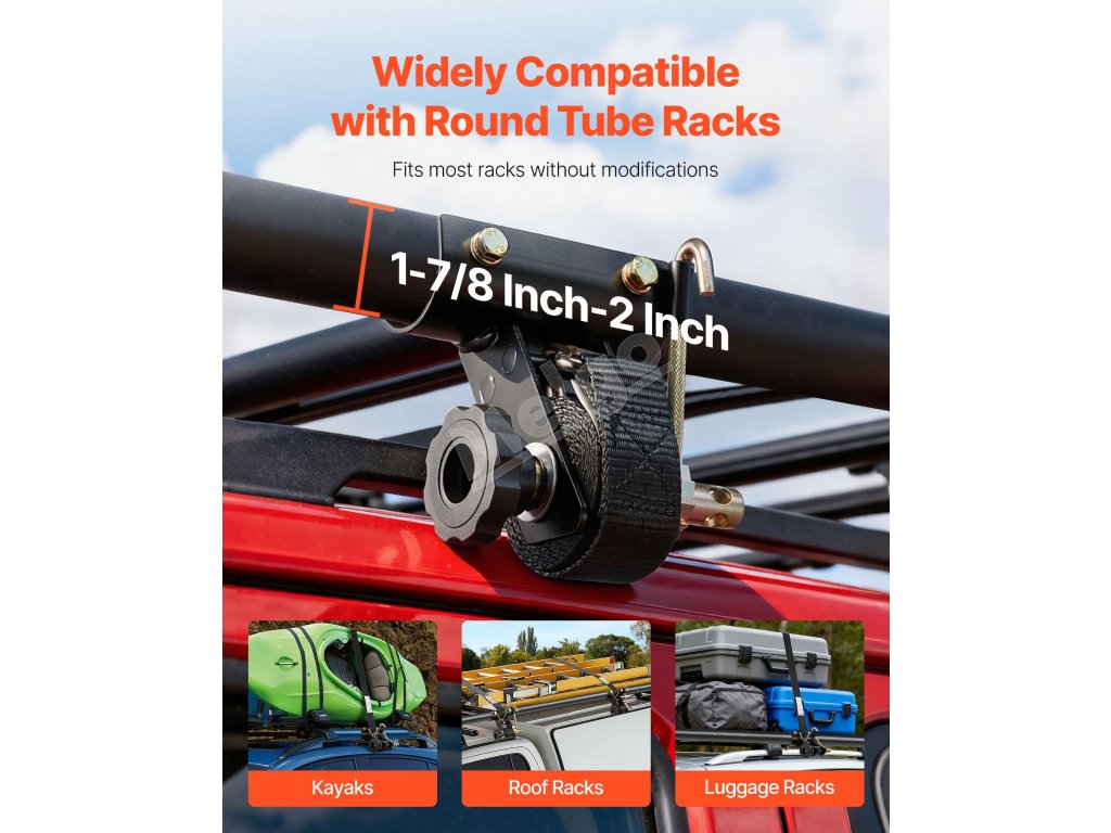 Každý 7,4 ft vysokopevnostný rebríkový stojanový popruh sa spája s robustnou sponou. Systém pomáha odolávať uvoľneniu na hrboľatých cestách a pri rýchlosti, čím udrží váš náklad pekne na mieste.