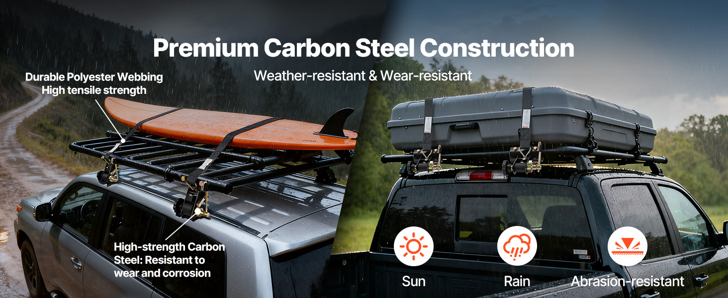 Tieto popruhy na nosič rúr používajú prémiové popruhy, hardvér odolný proti korózii a podložky odolné proti opotrebovaniu. Vydržia dážď aj slnko a zachovajú si ostrý vzhľad aj po opakovanom používaní.