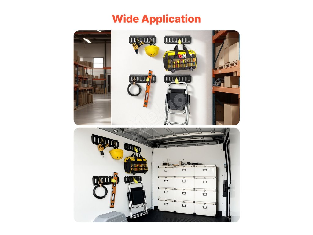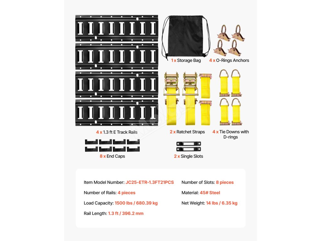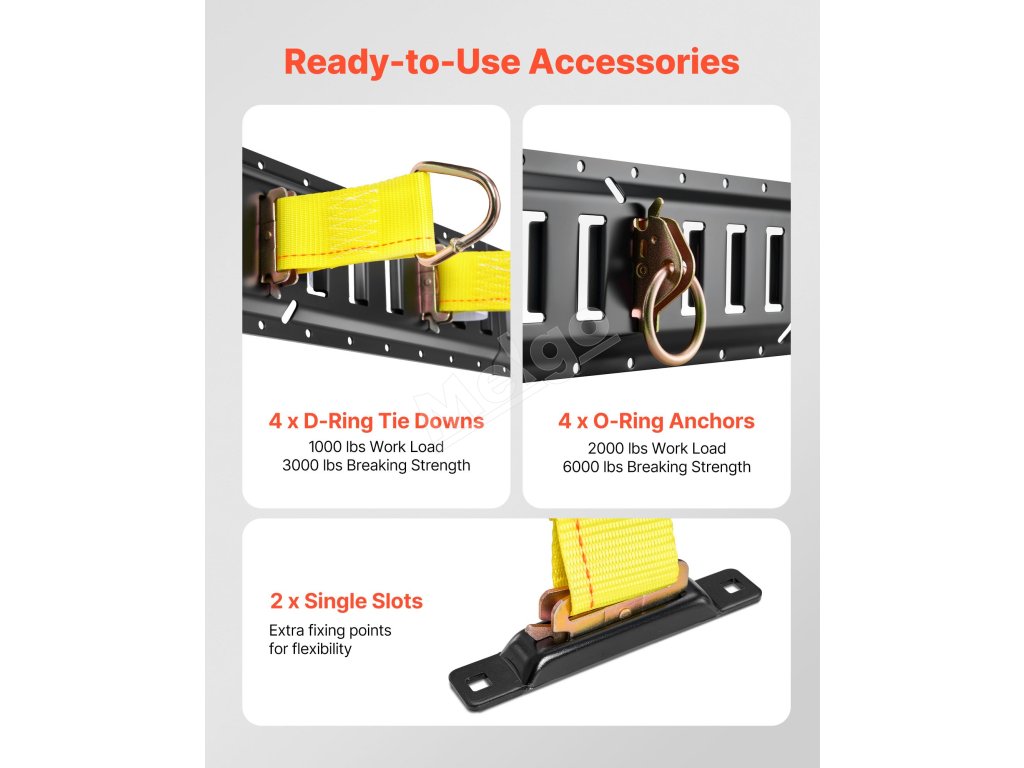 Sada e-track lišt 4×0.4 m, 21 dielov, 2 napínacie pásy, 4 d-krúžky