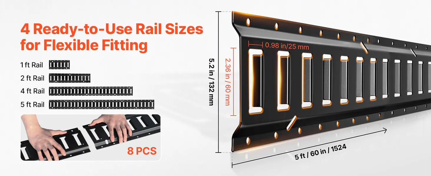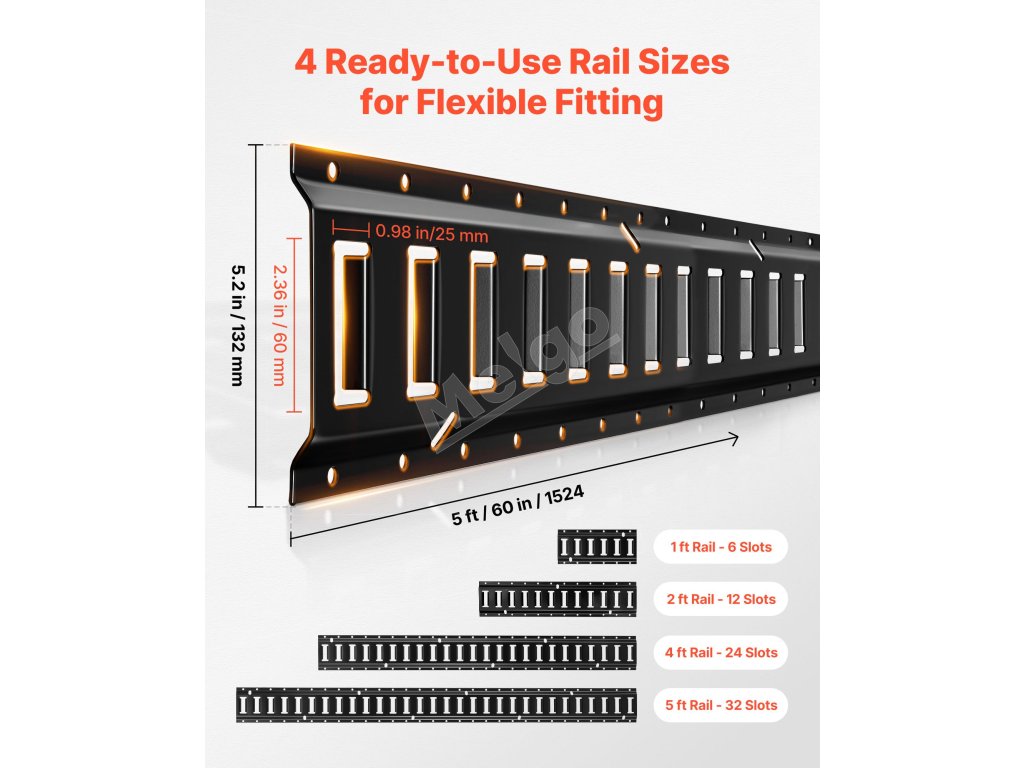 | Dĺžka koľajnice | 5 ft+4 ft+2 ft+1 ft/ 1,5 m+1,2 m+0,6 m+0,3 m |