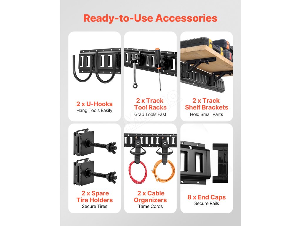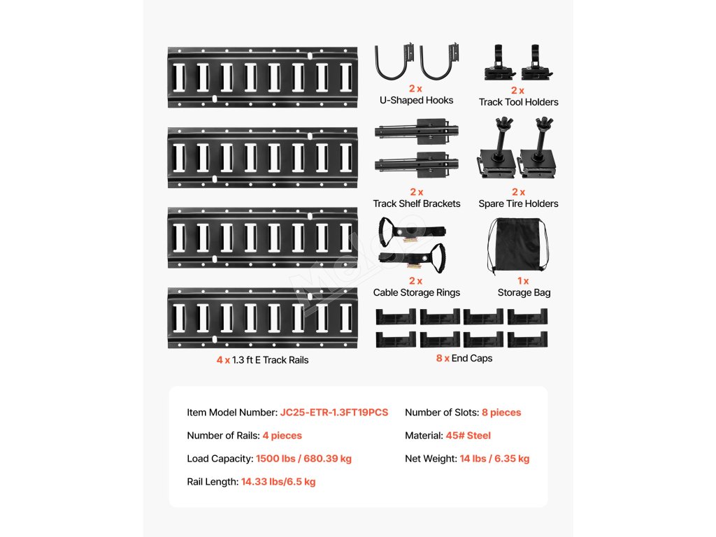 Súprava e-track lišt a príslušenstva 4×0,4 m, 2 háky, 2 držiaky