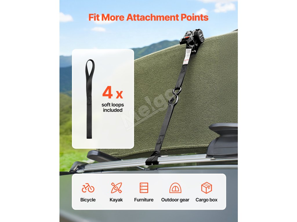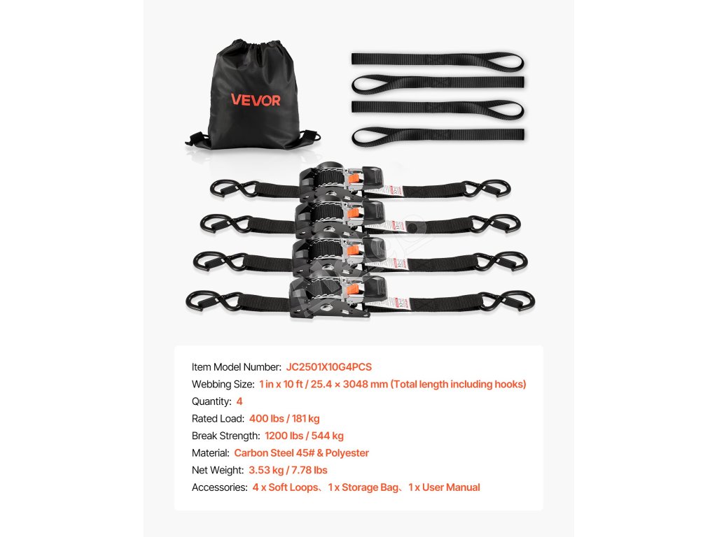 Upínacie pásy s račňou 25.4 mm × 3 m, 544 kg, 4 ks, mäkké slučky