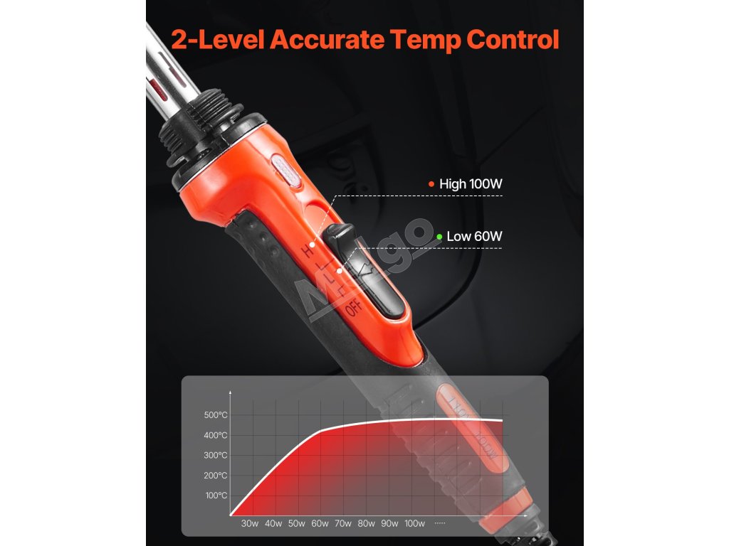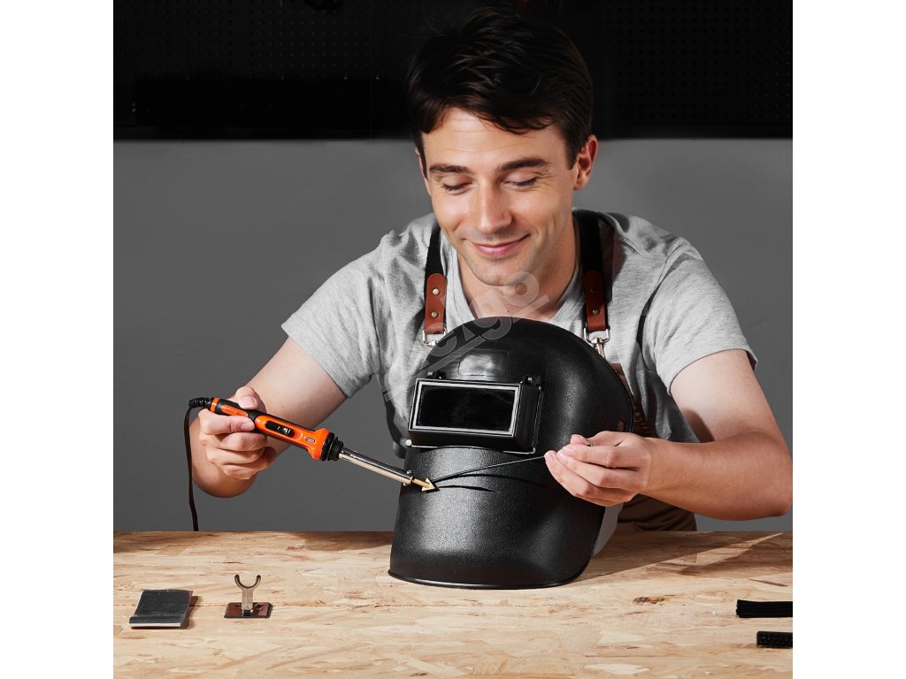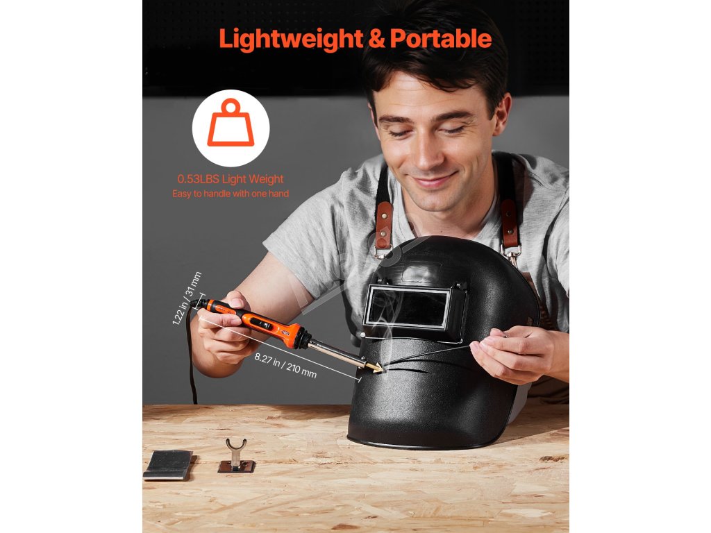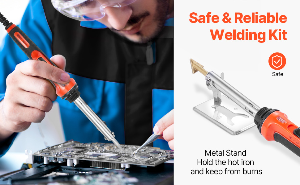 Naša súprava plastovej opravárenskej spájkovačky obsahuje robustný kovový stojan, ktorý slúži na opretie rozpálenej spájkovačky a chráni vás pred náhodným popálením, vďaka čomu sa ľahko stane skvelým spoločníkom pri domácich aj profesionálnych zváračských úlohách.