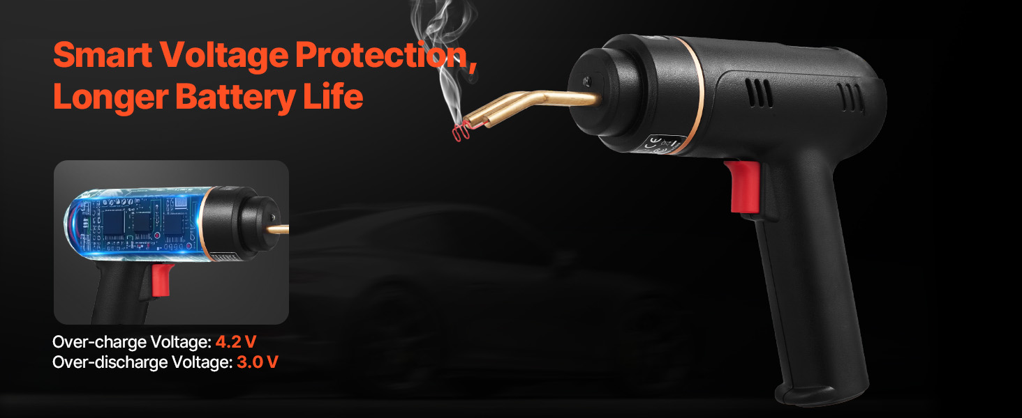 Táto bezdrôtová zváračka je vybavená funkciami ochrany proti preťaženiu a nadmernému vybití, čím zvyšuje bezpečnosť a zabraňuje náhodnej strate energie, zabezpečuje stabilnú prevádzku a chráni batériu pred prehriatím pri dlhodobom používaní.