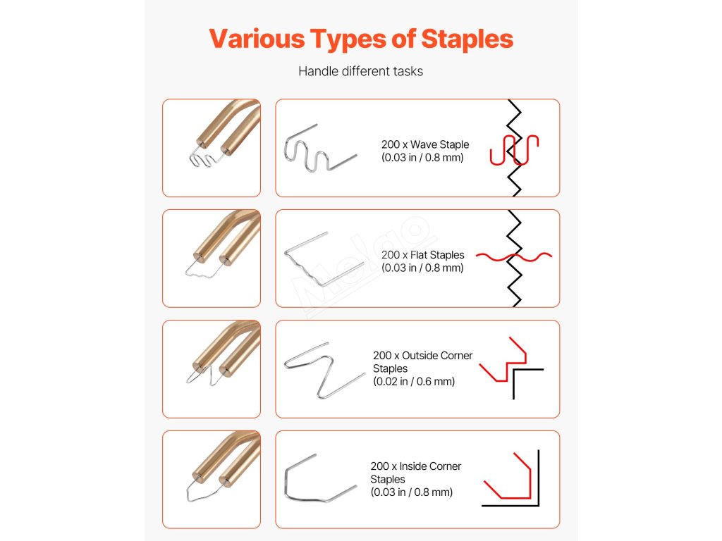 Dosiahnite spoľahlivé opravy plastov len v 4 krokoch. Pripravte si nástroje, postupujte podľa pokynov a rýchlo to zvládnete – ideálne pre začiatočníkov aj odborníkov. Stačí nainštalovať sponu, zahrievať ju, vložiť do plastu a odrezať prebytočné konce pre hladký povrch.