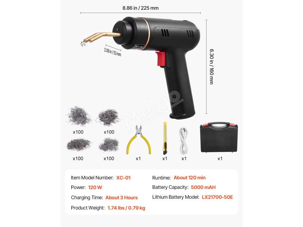 Opravujte plastové predmety bez námahy s našou 120 W akumulátorovou zváračkou na plasty! Vďaka rýchlemu zahrievaniu, 400 ks horúcich spôn, kompletnej sade príslušenstva a ochrane proti preťaženiu/prepätiu, zváračka na horúce spony bez námahy spĺňa požiadavky na opravu plastov a je ideálna pre rôzne scenáre opráv plastov!