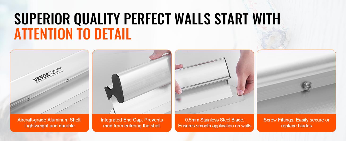 Naše tmely riešia nepohodlie, krehkosť a nepohodlie tradičných tmelov. Vďaka plášťu z leteckého hliníka, 0,5 mm čepeli z nehrdzavejúcej ocele a integrovanej koncovke s ľahko upevniteľnými skrutkami sú opravy stien a náterov efektívne, pohodlné a bez starostí.