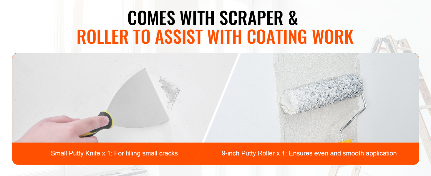 Súčasťou balenia je malý tmeliaci nôž a 7,9-palcový tmeliaci valček, ktoré pomáhajú vyplniť drobné praskliny a zabezpečujú rovnomerné a hladké nanášanie, vďaka čomu sú nátery stien bez námahy.