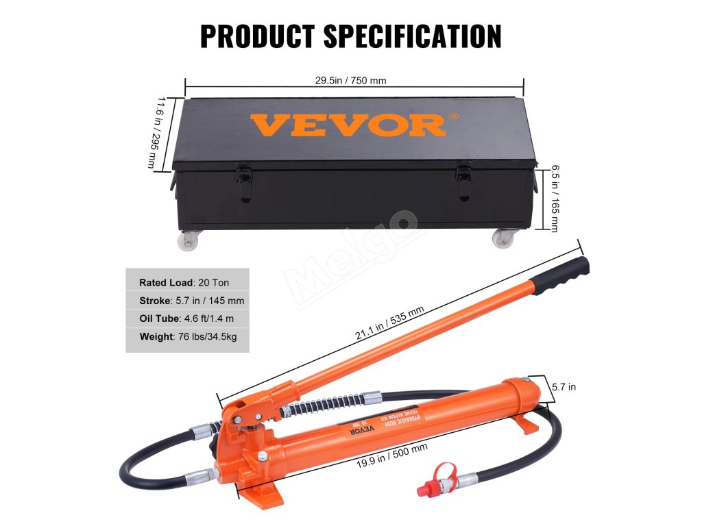 Automobilový hydraulický zdvihák VEVOR je skonštruovaný s ohľadom na odolnosť a spoľahlivosť. Je navrhnutý tak, aby zvládol náročné opravy automobilov a ťažkých zariadení. Povrchová úprava elektrostatickým práškovým nástrekom zaručuje dlhotrvajúcu povrchovú úpravu. Materiál QT450 použitý v hydraulickom zdviháku poskytuje pevnosť aj odolnosť. Náš materiál valca Q235B zabezpečil robustný výkon pod tlakom. Tesniaci krúžok z TPU zabraňuje únikom, čím zaručuje spoľahlivú prevádzku. Táto súprava je ideálna pre profesionálnych mechanikov, ktorí potrebujú náradie, ktoré vydrží náročné používanie. Je ideálna pre tých, ktorí chcú spoľahlivé náradie na domáce opravy!