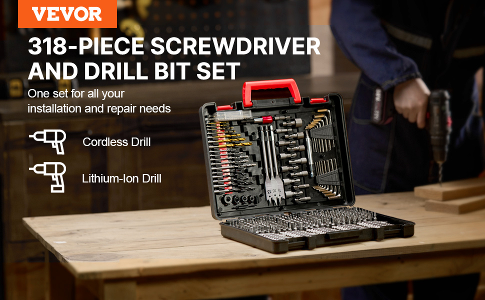 VEVOR 318-dielna sada skrutkovačov a vrtákov, efektívna a kompletná