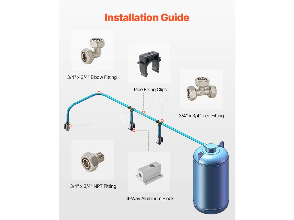 Tento systém potrubia na stlačený vzduch ponúka 2 flexibilné rohové spôsoby pripojenia. Môžete si vybrať 90-stupňovú kolenovú tvarovku na pravouhlé pripojenie, ktorá znižuje polomer ohybu, alebo sa rozhodnúť pre metódu polomerového ohybu, ktorá sa ľahko prispôsobí požadovanému tvaru s polomerom ohybu 6 až 8 palcov.