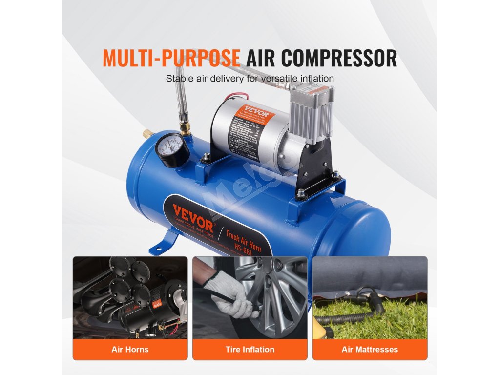 Kompresor 12V s nádržou 1.6 Gallon/6 L, 120 psi pre trúby a pneumatík