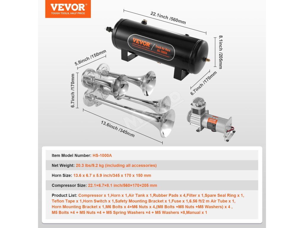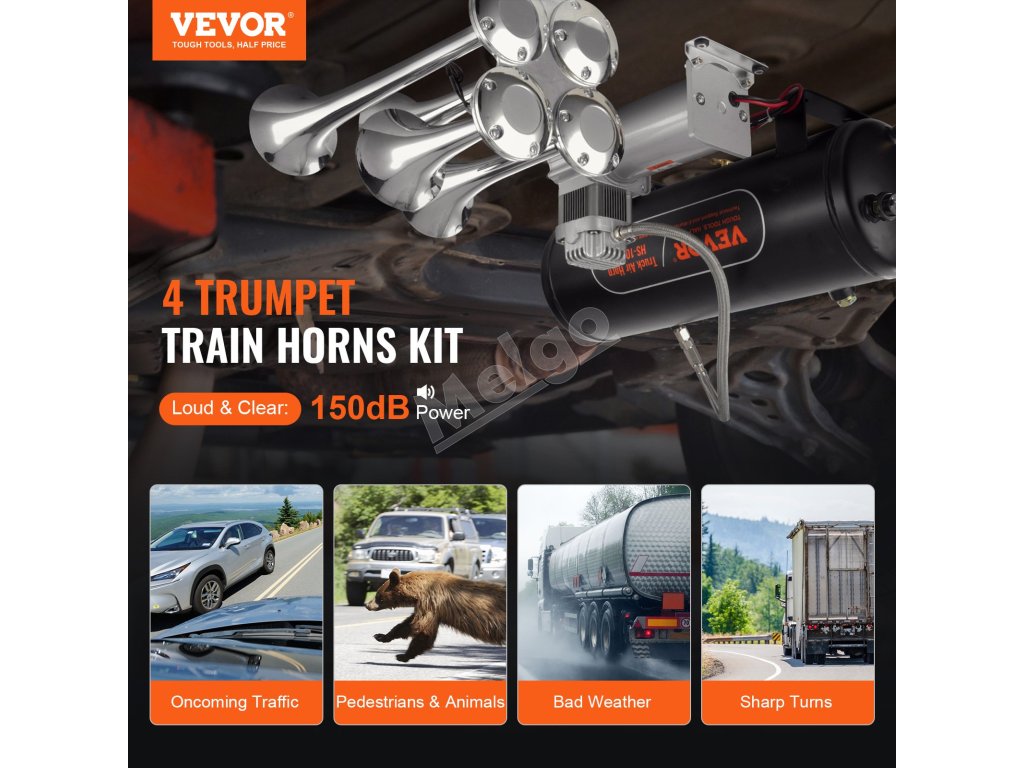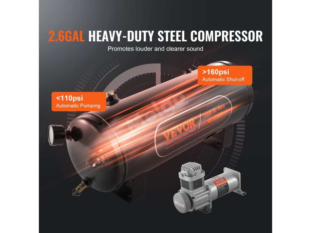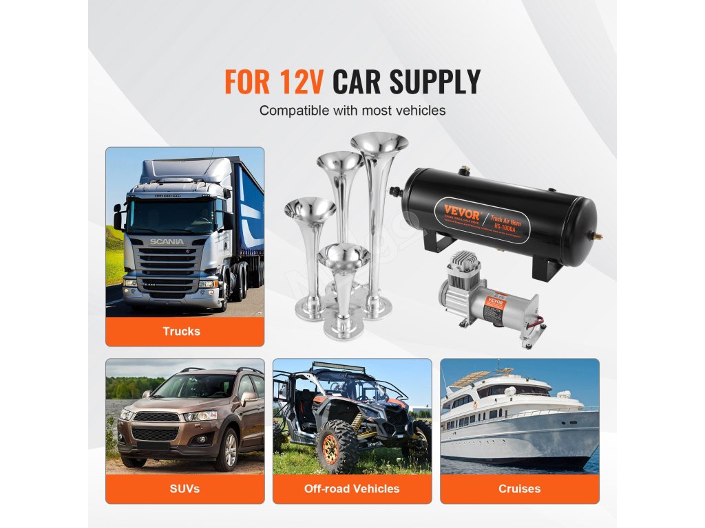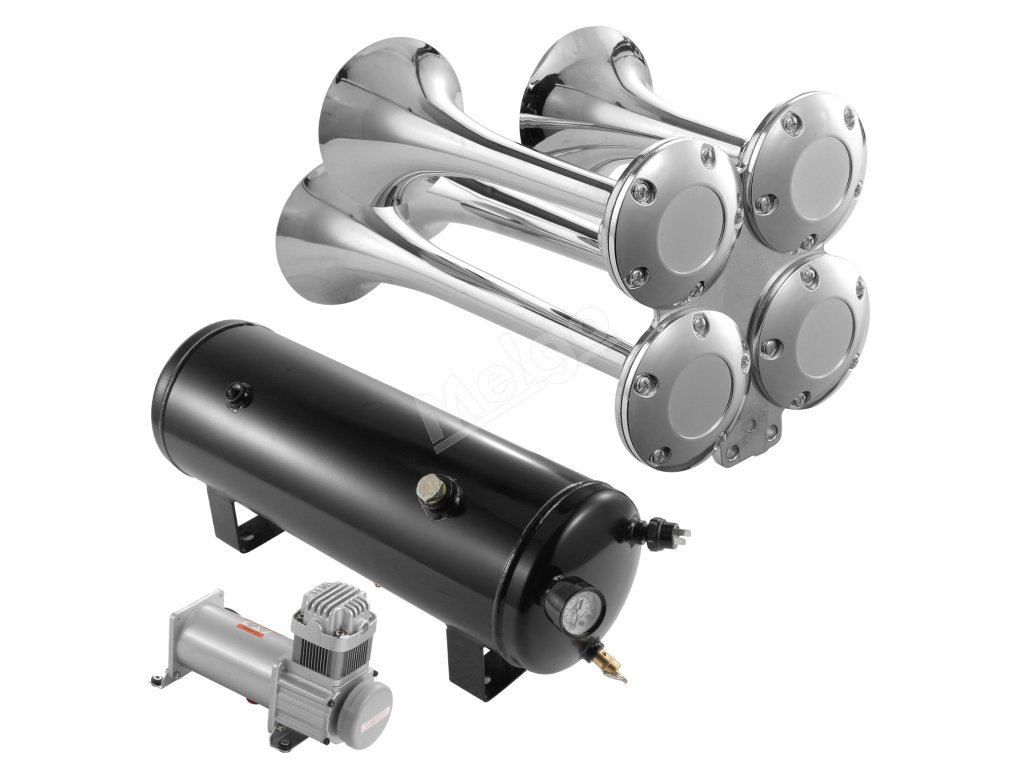 Sada vlakových trúb 4× trúby 150dB 12V 160 psi 2.6 Gal/10 L nádrž
