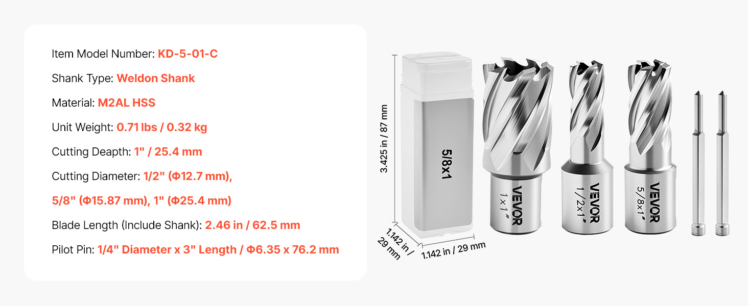 Tieto prstencové vrtáky obsahujú veľkosti a typy stopiek, ktoré sa bežne používajú na konštrukčné a výrobné úlohy.