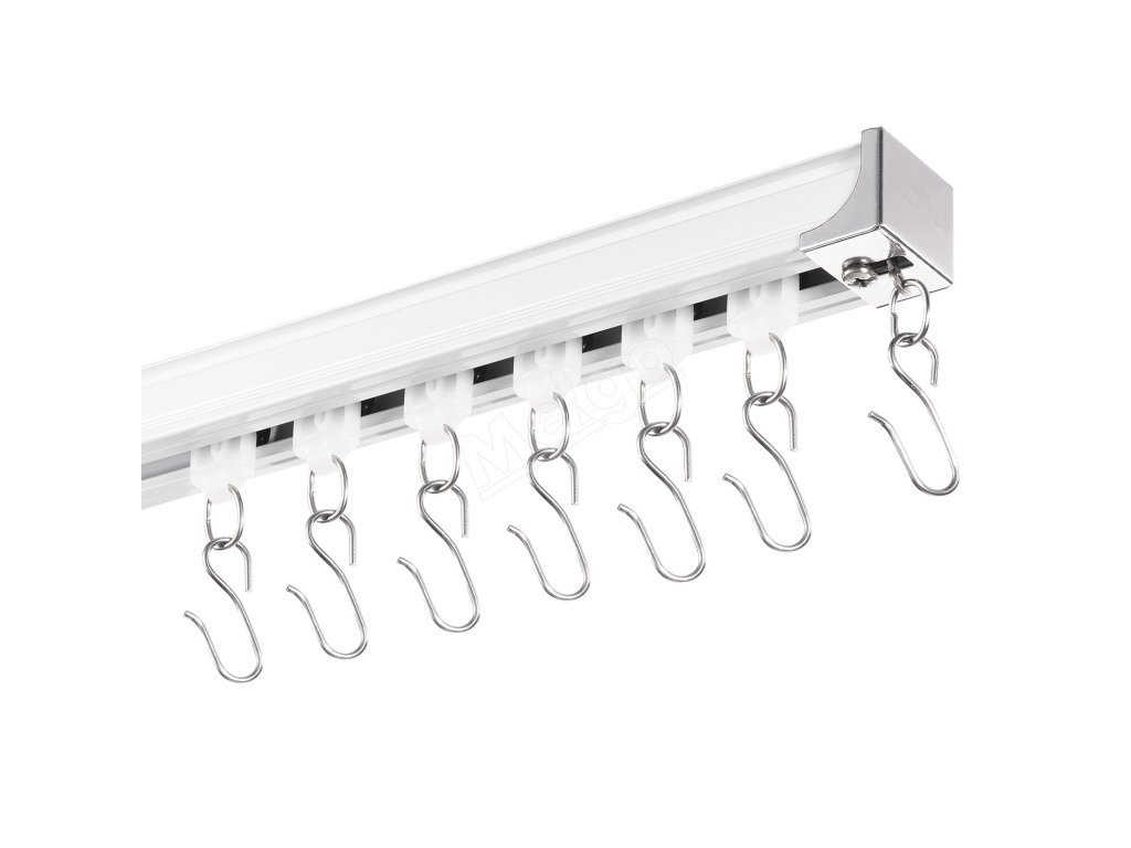 Stropná koľajnica na závesy 5.9 ft/1.8 meter, posuvná, biela s háčikmi